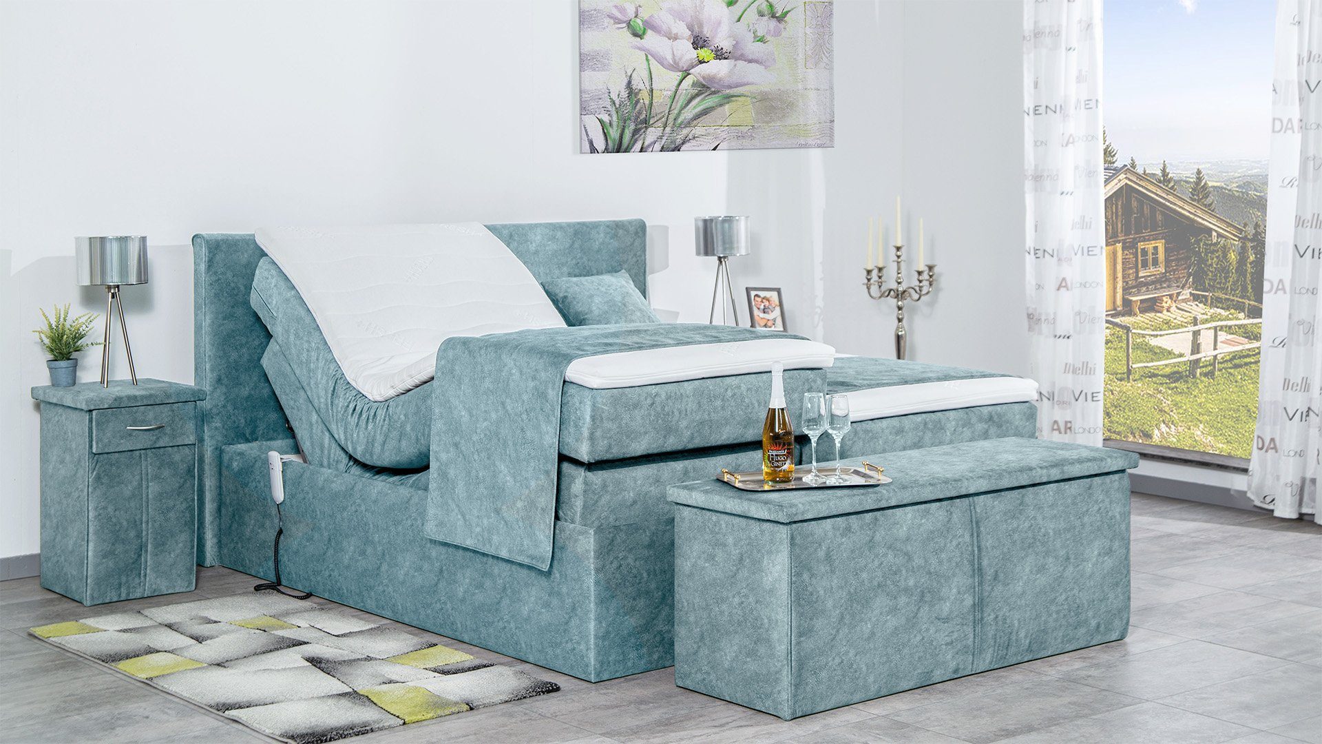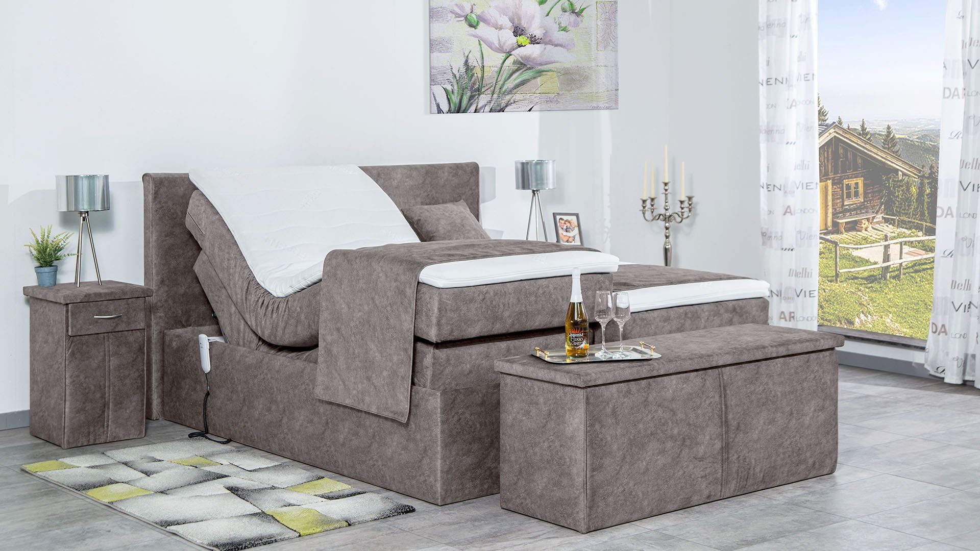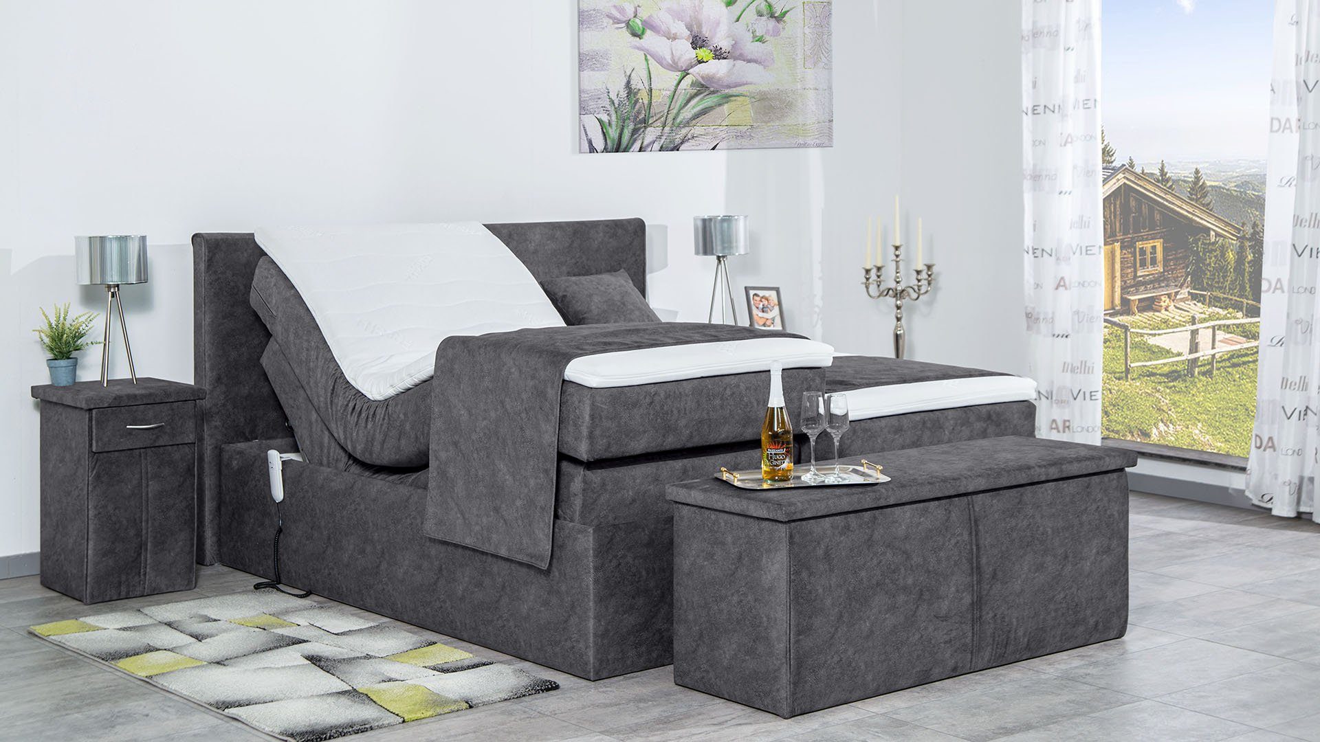 Ausstattung | Elektrische Höhenverstellung, Ohne Fußteil, Ohne Nachttisch, Ohne Truhe, 7 Zohnen Taschenfederkern Matratze, Härtegrad H3, Ergoflex-Topper |