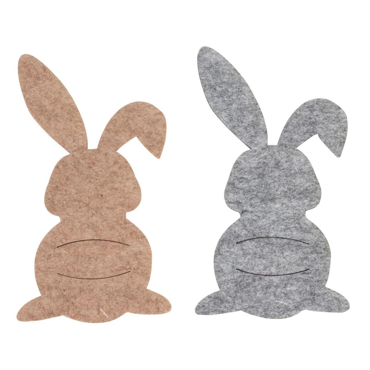 Design: 12 Bestecktaschen in Form eines Osterhasen mit niedlichen Ohren – perfekt für das Osterfest. 6 Besteckhalter in grau und 6 Besteckhalter in braun.