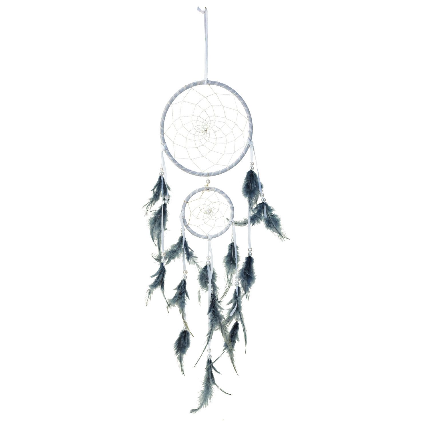 Traumfänger mit Federn & Perlen – in Weiß oder Grau