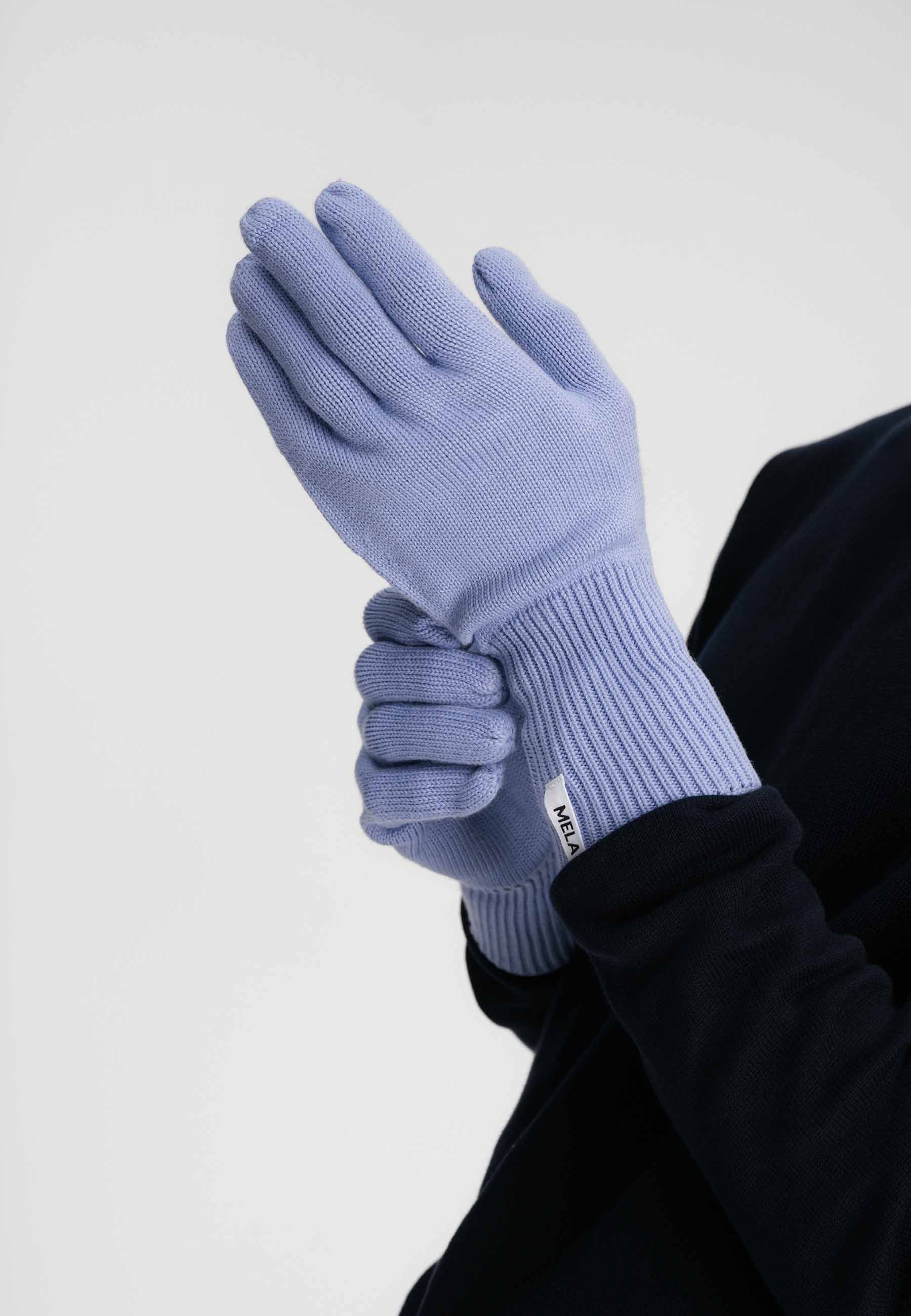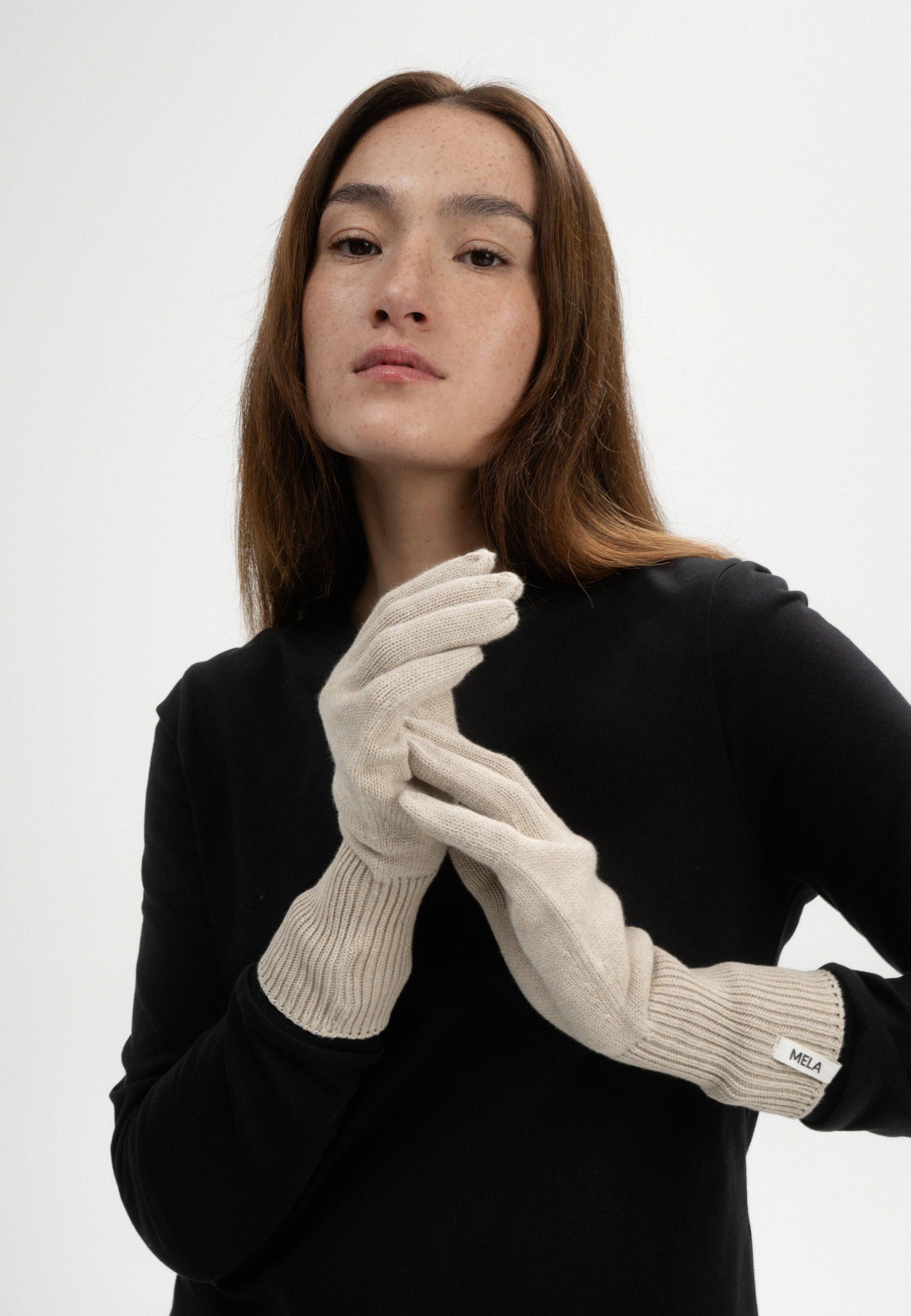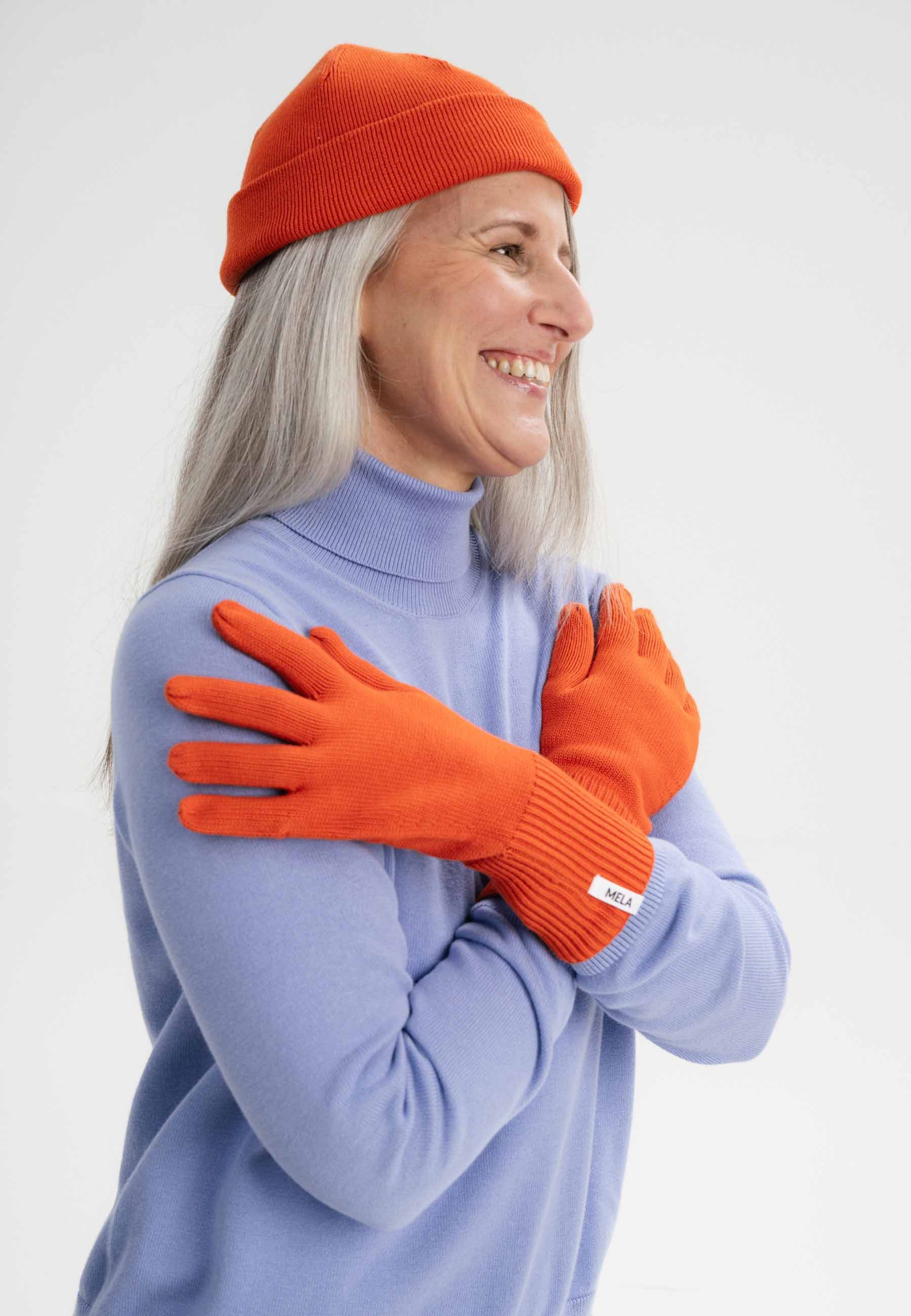Die Handschuhe von MELA aus 100% Bio-Baumwolle bieten angenehmen Schutz an kühlen Tagen. Perfekt kombinierbar mit unseren Schals und Mützen.