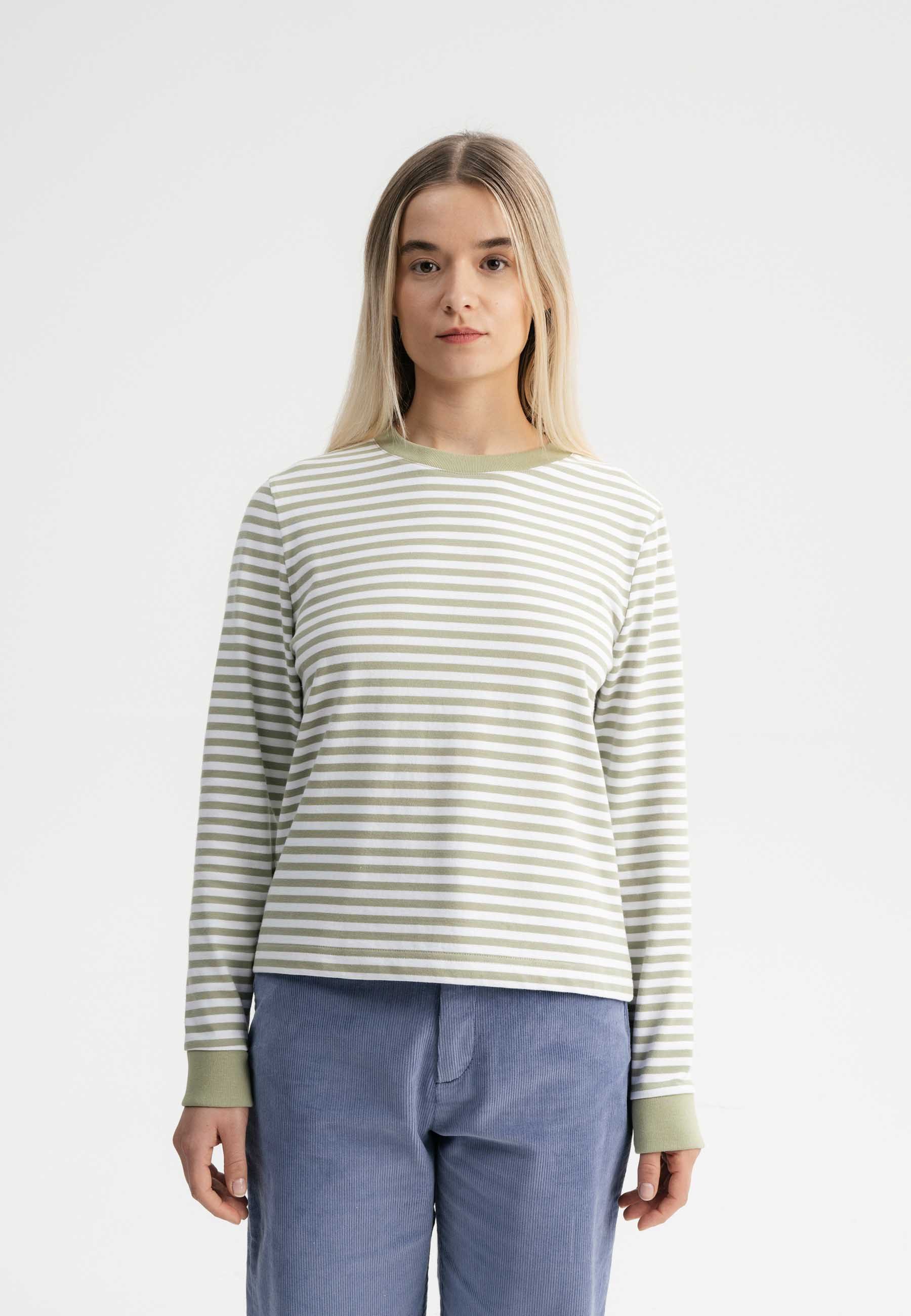 Aastha ist ein vielseitiges Langarmshirt, gefertigt aus schwerem 100% Fairtrade Bio-Baumwolljersey. Der gerippte Kragen und breite Rippbündchen am Ärmel sorgen für einen casual Look. Die normale Passform bietet maximalen Komfort und macht es zum idealen Teil für entspannte Tage.