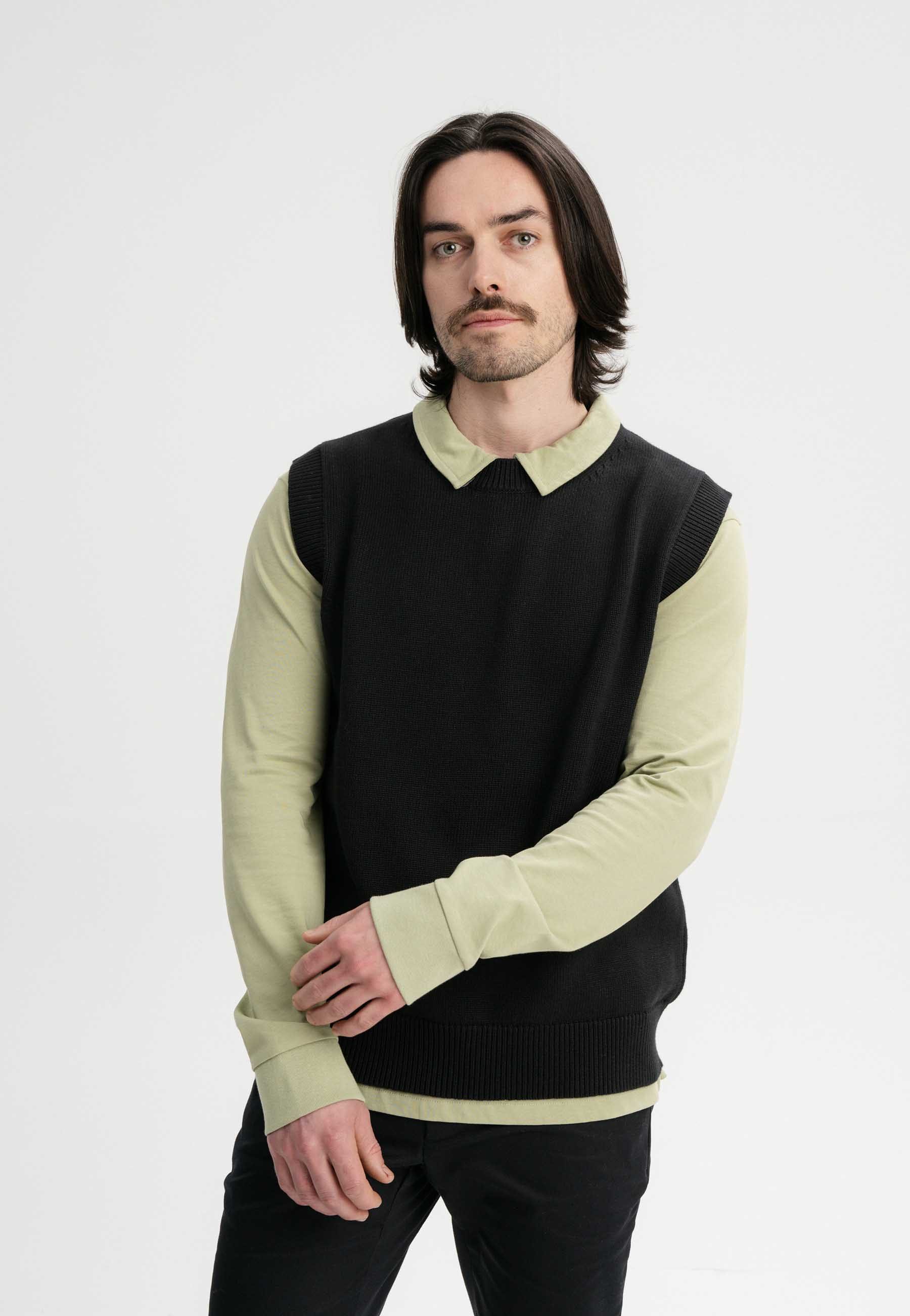 Hergestellt aus 100% Fairtrade-Baumwolle aus biologischem Anbau zeichnet sich dieser atmungsaktive Pullunder durch ein besonders angenehmes Tragegefühl aus und ist vollständig vegan.