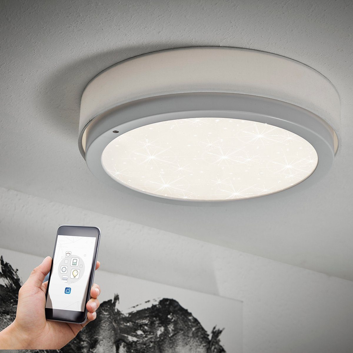 BEDIENUNG Das Ein- und Ausschalten der Leuchte erfolgt entweder mit dem Lichtschalter, mit der mitgelieferten Fernbedienung oder über die „Smart Life“ App. Mit der Fernbedienung oder der „Smart Life“ App kann die Lichtfarbe zwischen ca. 2.700 K (warmweiß) und ca. 6.000 K (kaltweiß) verändert werden. Die Leuchte verfügt über eine Memory-Funktion, d.h., dass die Leuchte die eingestellte Lichtfarbe beibehält, wenn sie aus- und wieder einschaltet wird.