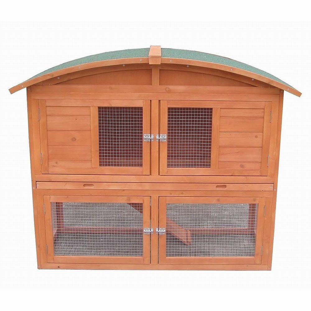 Diese Hasen-/ Kaninchen Villa ist aufgrund des Runddaches ein echter Blickfang in jedem Garten. Aufgrund des speziellen Aufbaus ist diese von fast allen Seiten einsehbar. Der sichtgeschützte Bereich bietet einen Rückzugsort für Ihren Liebling, in dem er sich jederzeit verbergen kann. Die zwei Etagen können mit den mitgelieferten Holzrampe verbunden werden, um den offenen Freilauf zu erreichen, sodass die Tiere auch direkten Bodenkontakt haben können. Der Stall verfügt über 4 Türen mit Scharnieren, so dass Sie jederzeit Zugriff auf Ihre Lieblinge haben. Durch die engen Maschen ist dieser Stall ebenfalls für Meerschweinchen und andere Kleintiere geeignet. Er ist praktisch sowie pflegeleicht und bietet den Tieren viel Bewegungsfreiheit.