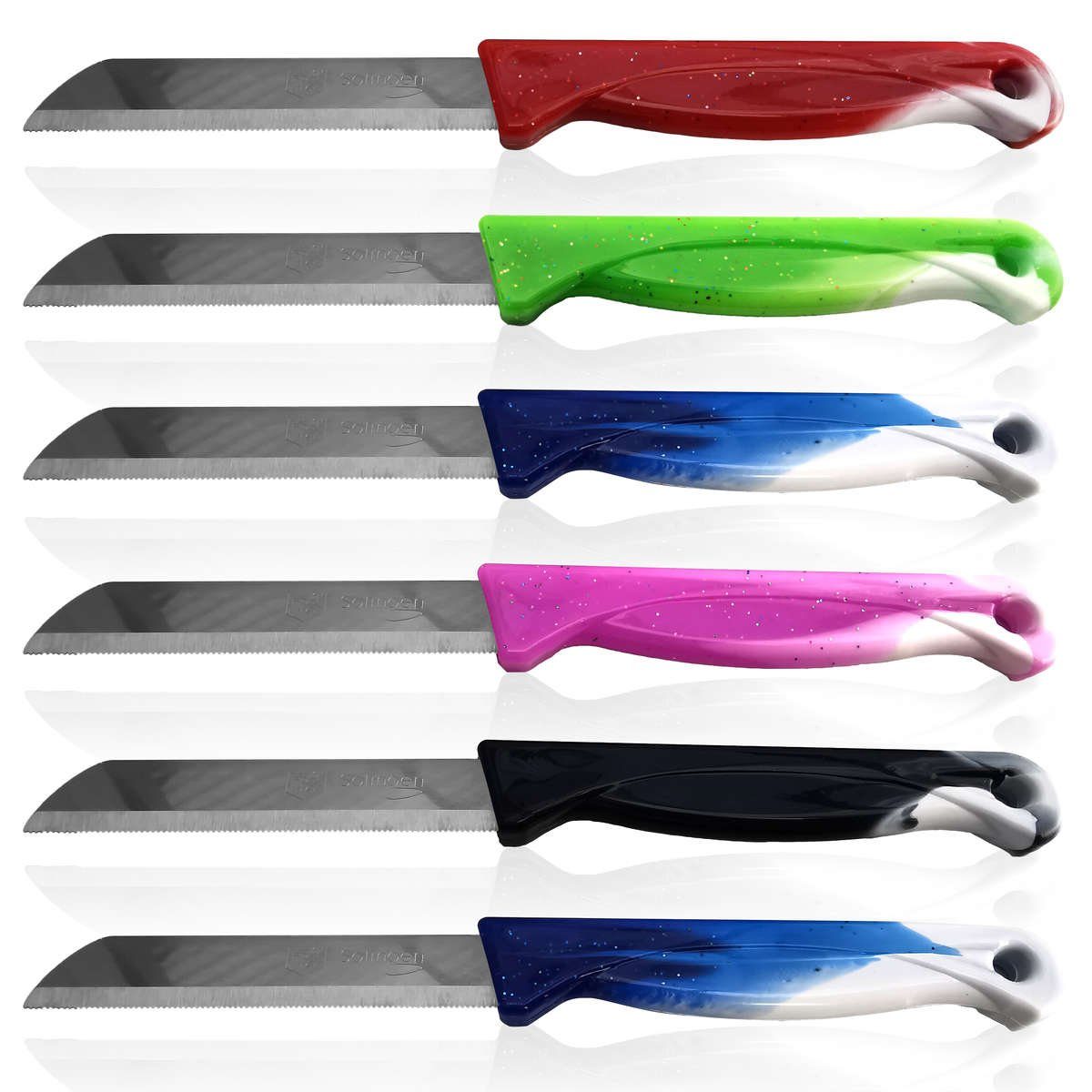 Die Messer aus robusten rostfreien Edelstahl überzeugen mit ihren edlen und hochwertigen Design.