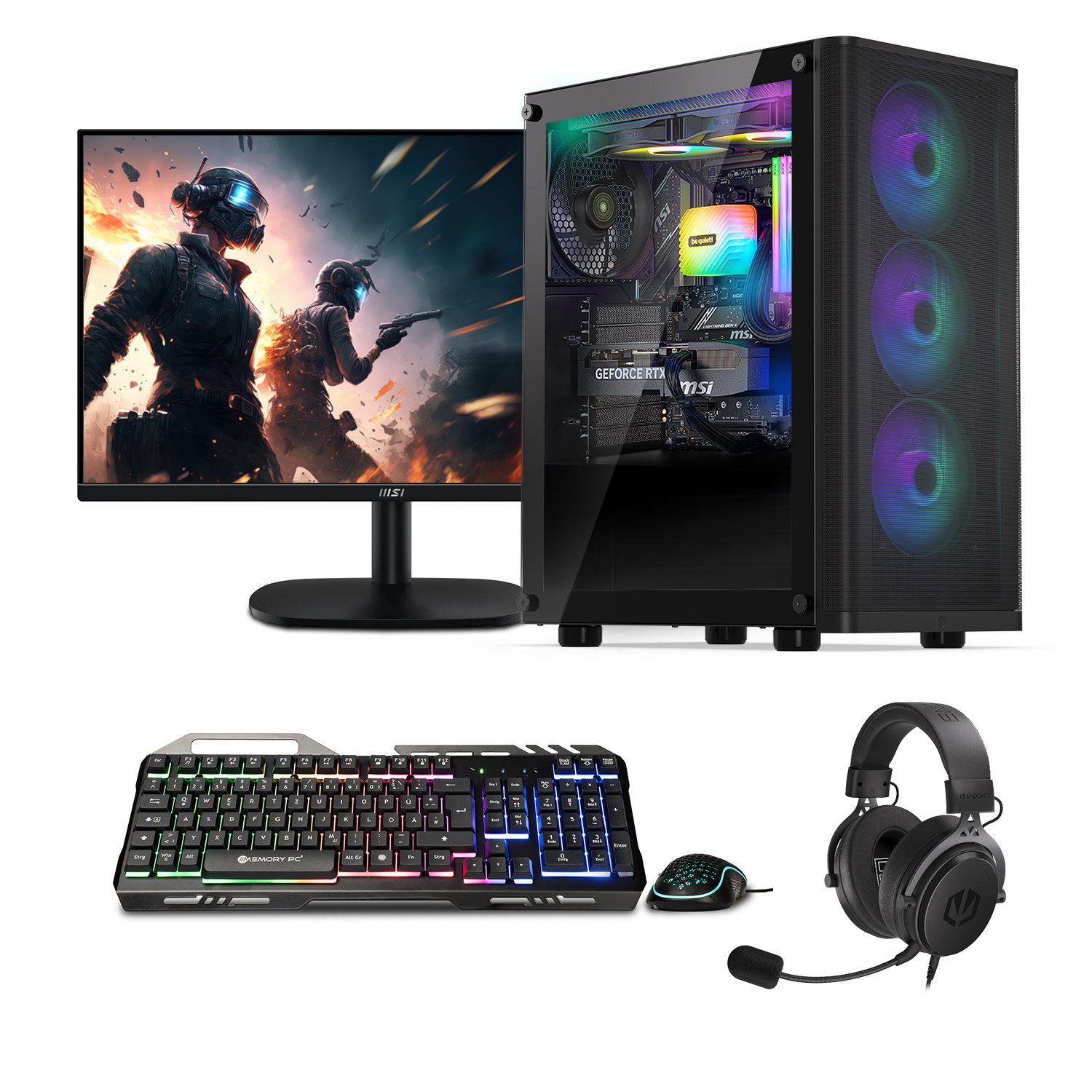 Lieferumfang | Gaming PC Maus Tastatur Headset Monitor W-Lan Stick |