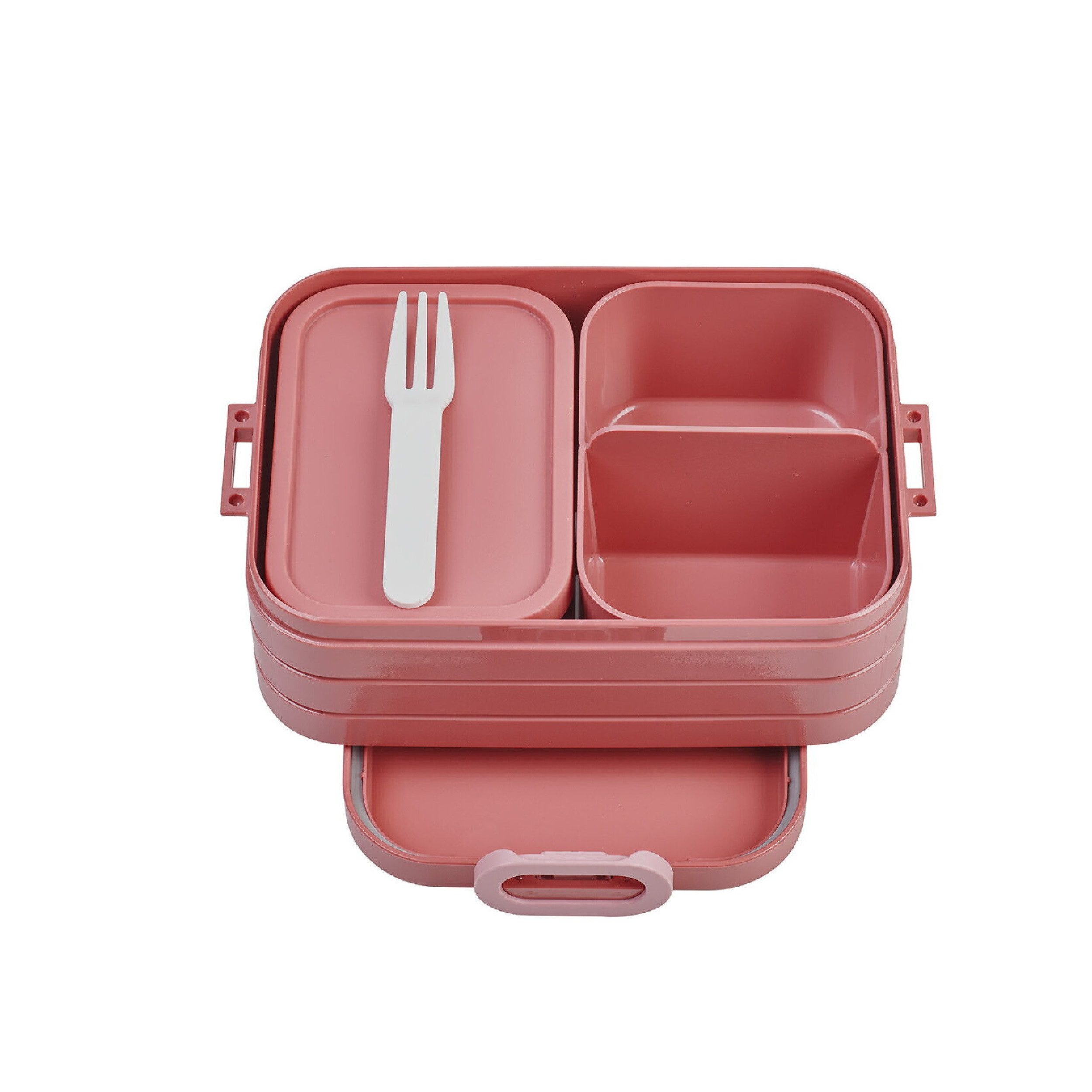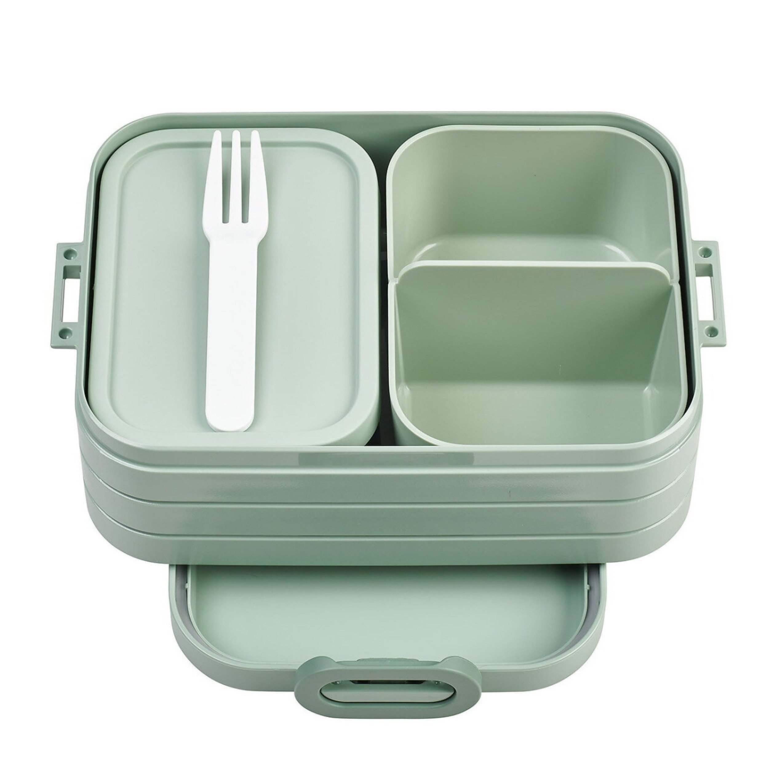 Lunchbox mit Fächern und einer extra Box mit Deckel und Gabel, so bleiben Snacks und Mittagessen immer frisch und lecker. Nicht gefriergeeignet; Für den Kontakt mit Lebensmitteln geeignet