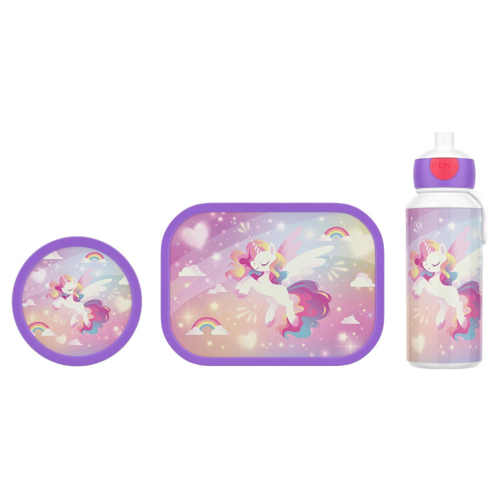 Lieferumfang | 1x Brotdose, 1x Trinkflasche, 1x Fruchtbox |