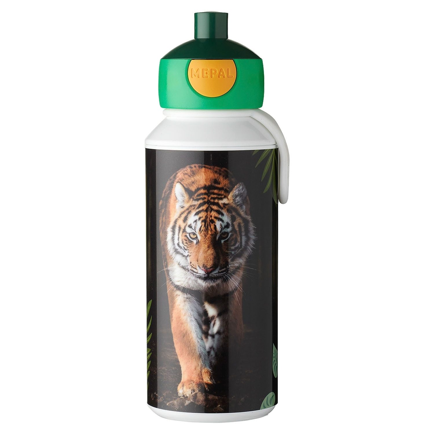 Die Trinkflasche CAMPUS von Mepal in Grün kombiniert Stil und Funktionalität. Mit einem Fassungsvermögen von 400 ml und Maßen von 6,5 cm im Durchmesser sowie 18 cm in der Höhe ist sie ideal für unterwegs. Hergestellt aus Kunststoff und Silikon, ist die Flasche mit einem Tigermotiv verziert. Sie verfügt über eine praktische Trageschlaufe und ein Push-and-Drink-System, ist spülmaschinengeeignet und auslaufsicher.