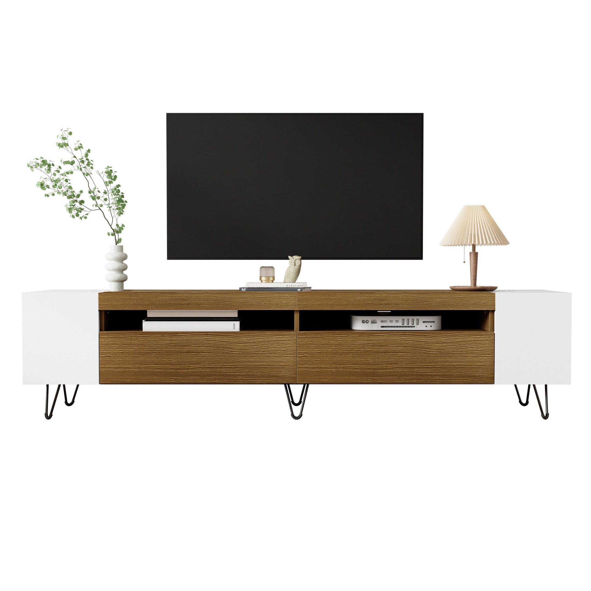Um nach einem langen Arbeitstag zu entspannen oder abschalten zu können, gehört für einige Menschen ein guter TV-Abend in einfach dazu! Für uns steht fest, dass dazu auch die Umgebung und die damit verbundenen Möbelstücke einfach wichtig sind. Unser Lowboard spricht für sich denn es verfügt über genügend Stauraum dank der 2 offen gelegenen Fächer und den 2 versteckte Schubladen. Holen Sie sich mit diesem Lowboard ein Stück Natur in Ihr Zuhause!