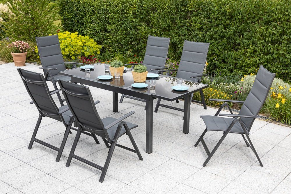 Set beinhaltet | 1 Ausziehtisch / 6 Klappsessel |