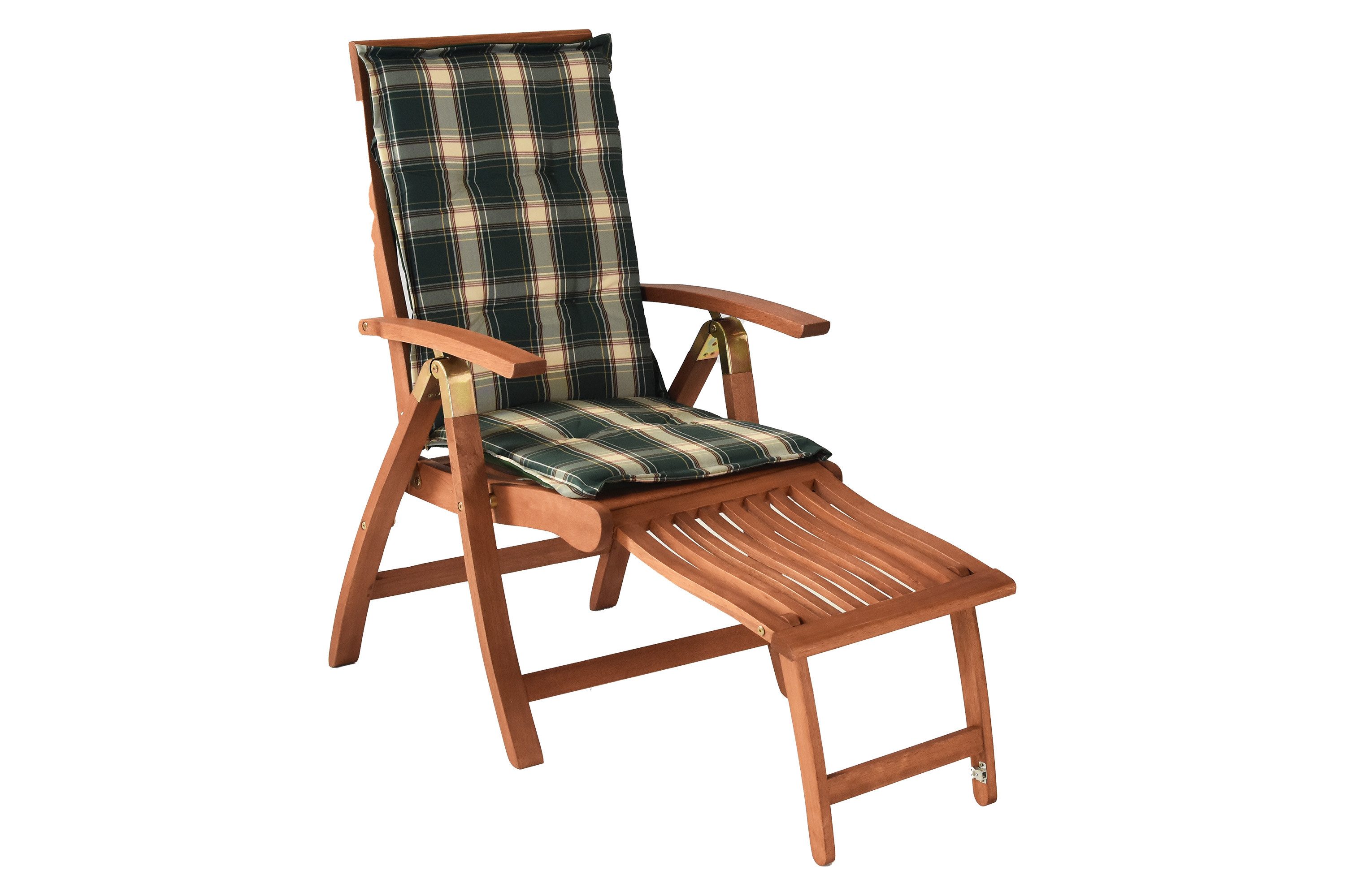 Dieses zweiteilige Comodoro Set besteht aus einem Klappsessel mit Fußteil und einem Kissen.