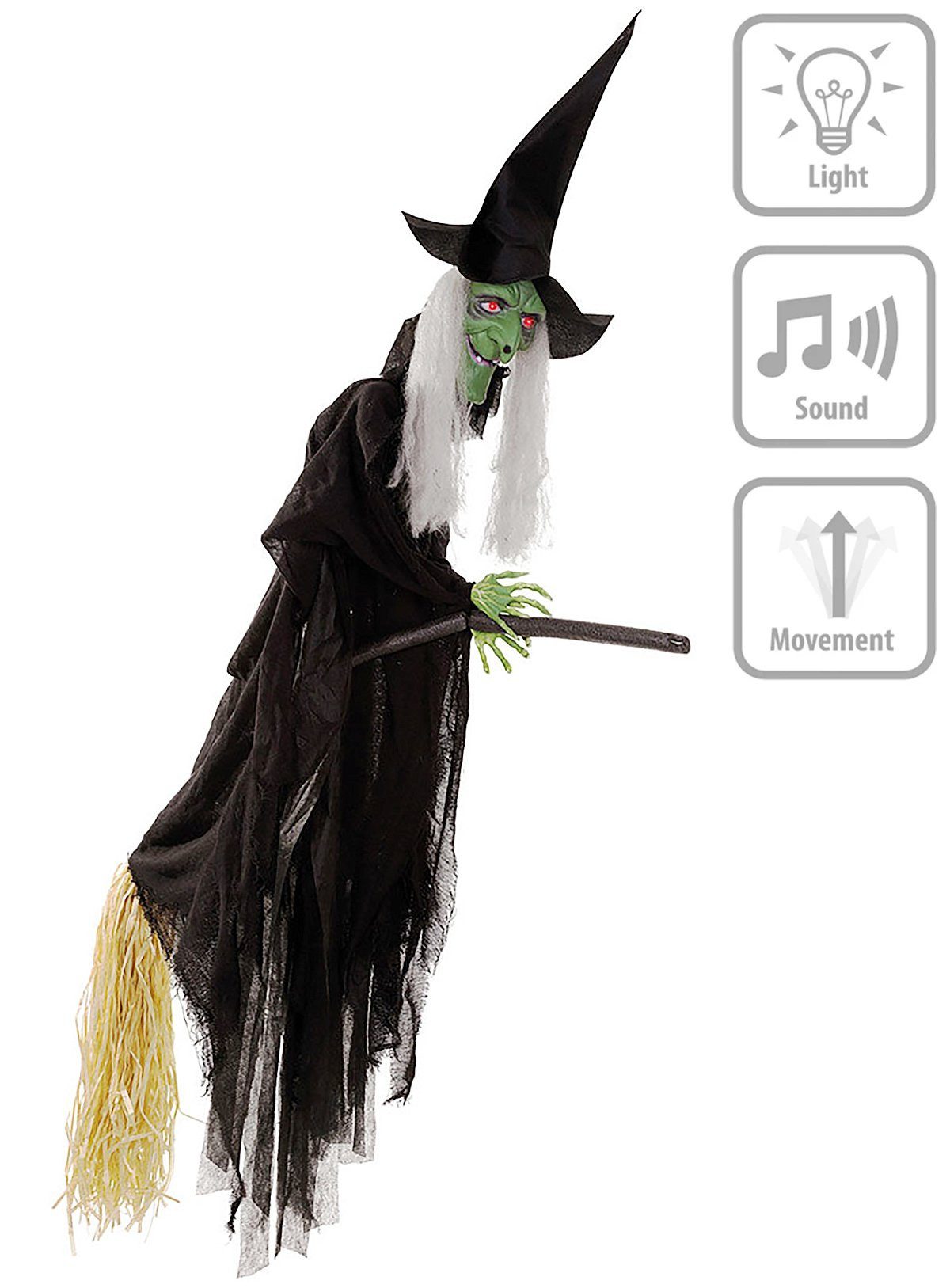 Lieferumfang | - Animierte hässliche Hexe mit Sound einteilig- Höhe: 118 cm- ohne sonstiges Zubehör |