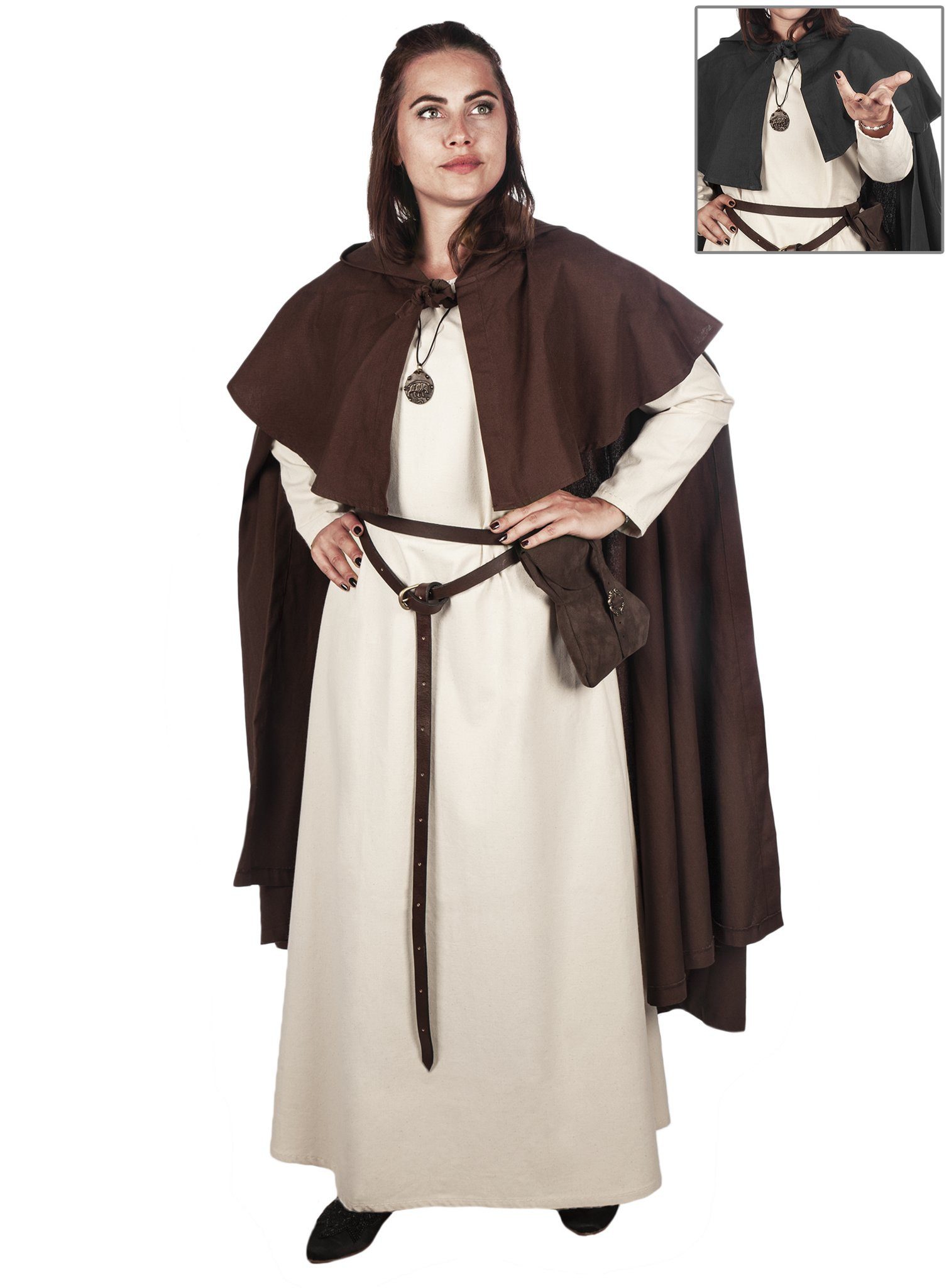 Der Mittelalter Umhang mit Pelerine Rothgar ist aus unserem sehr stabilen Canvas Baumwollstoff mit Leinenoptik hergestellt, der einerseits einen rustikalen Eindruck erweckt, aber andererseits auch sehr angenehm zu tragen ist!