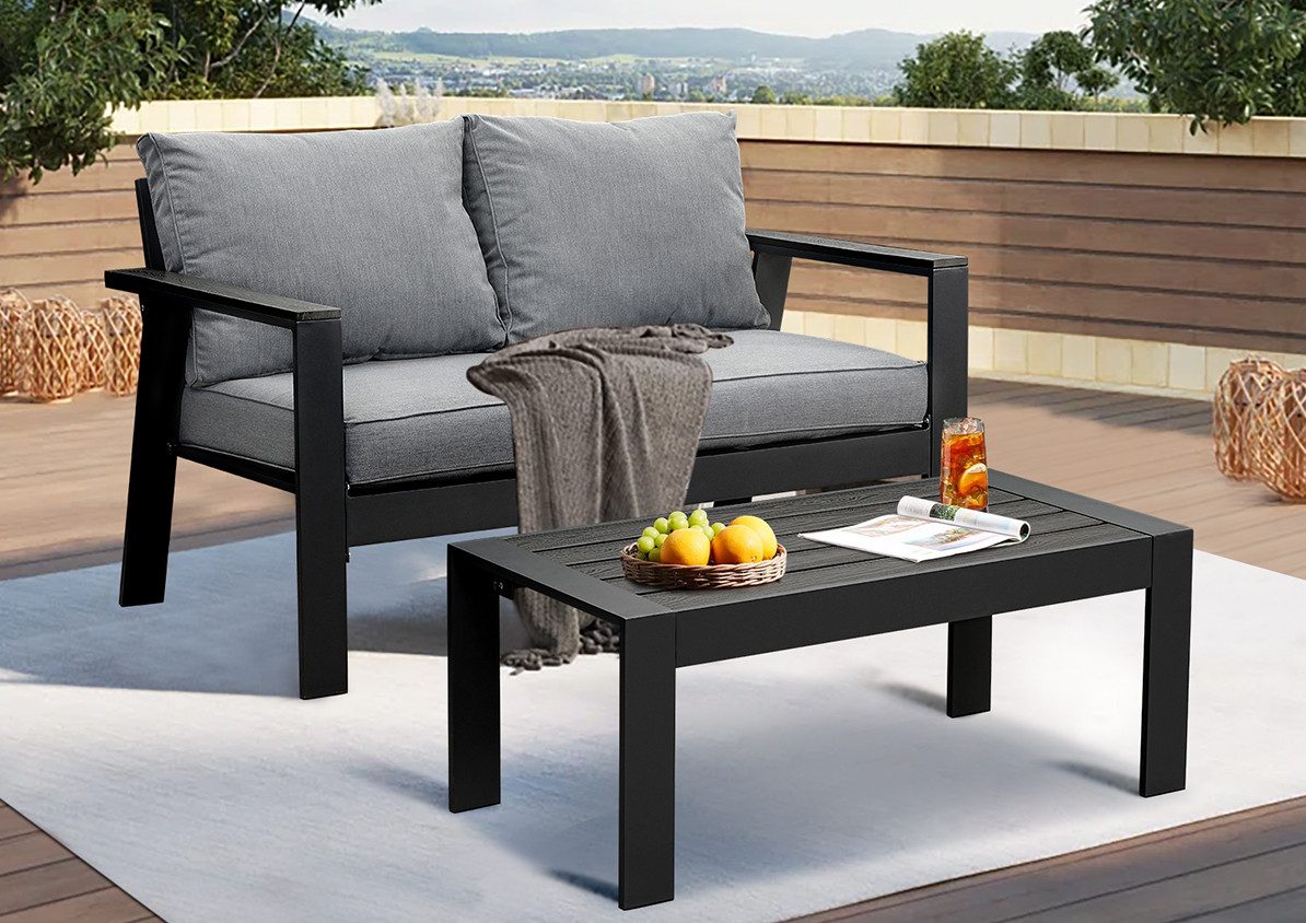 Lieferumfang | 2-Sitzer Sofa, Couchtisch Inkl. Auflagen, Aufbauanleitung |
