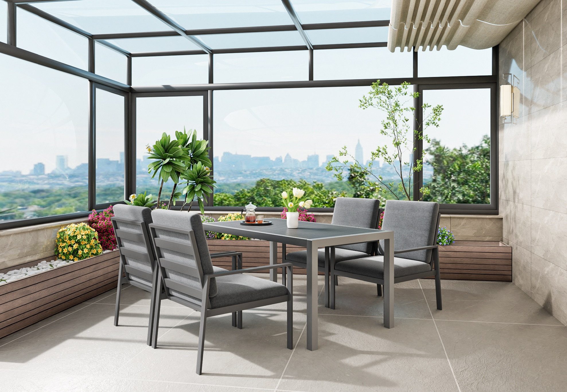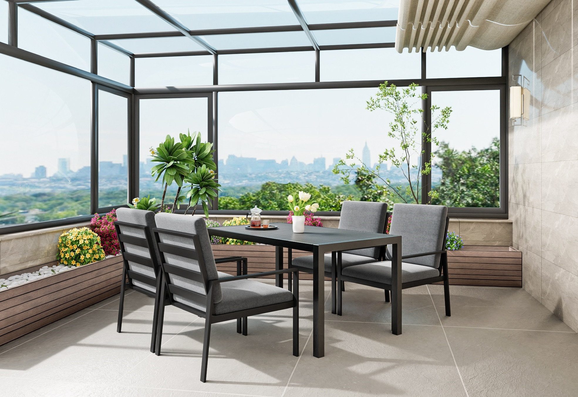 Diese MeXo Garten Essgruppe aus Aluminium bietet eine perfekte Kombination aus Qualität, Komfort und Langlebigkeit für Ihren Außenbereich. Mit ihrem ergonomischen Design und den hochwertigen Materialien sorgt sie für ein entspanntes und stilvolles Outdoor-Erlebnis.