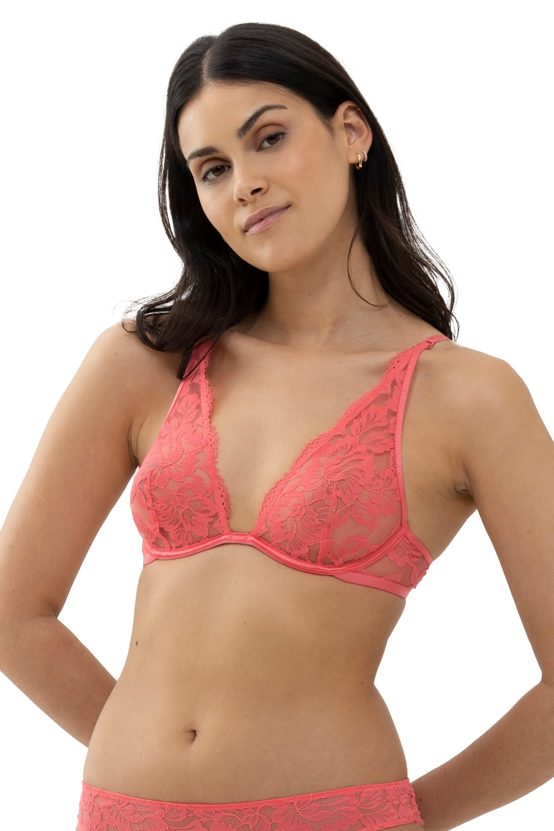 Mey Triangel-Bügel-BH 74244 parrot pink Ohne Polsterung Genähter Cup, optimale Unterstützung Allover-Tüllspitze Mit Bügeln Verstellbare Träger Haken-Ösen-Verschluss, dreifach verstellbar Handwäsche, nicht Trockner geeignet Die mey-Bügel-BHs aus der Serie Amazing in der Farbe Parrot Pink sind ein absolutes Must-have! Aus edlen Materialien, raffinierten Schnitten und bezaubernden Farben werden verführerische Wäscheträume, die so einzigartig sind wie Sie selbst. Materialzusammensetzung: 80% Polyamid, 20% Elasthan
