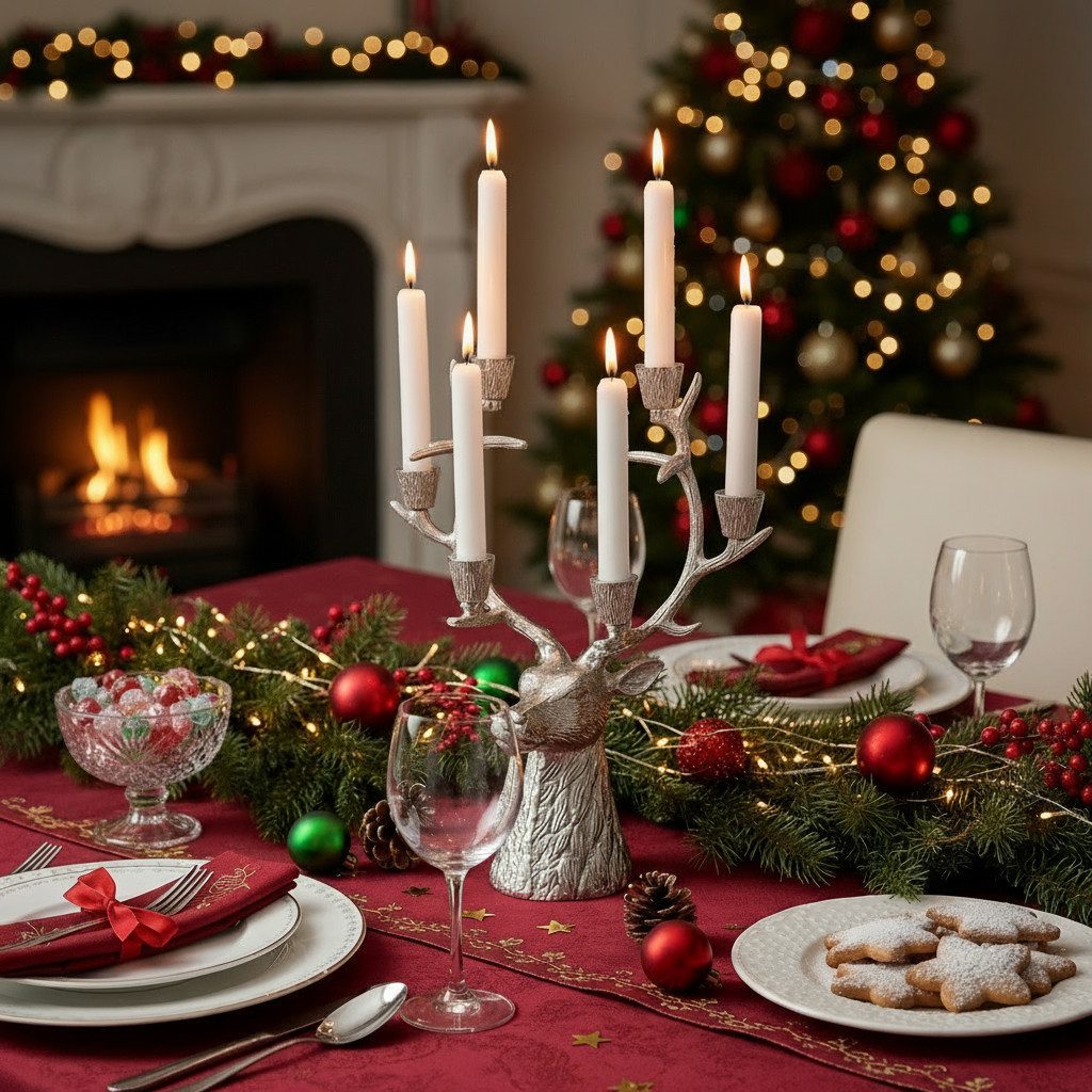 Einzigartige Gestaltung: Majestätischer Kerzenleuchter in Hirschform, gefertigt aus hochwertigem vernickeltem Aluminium mit galvanisiertem Finish für langanhaltenden Glanz.