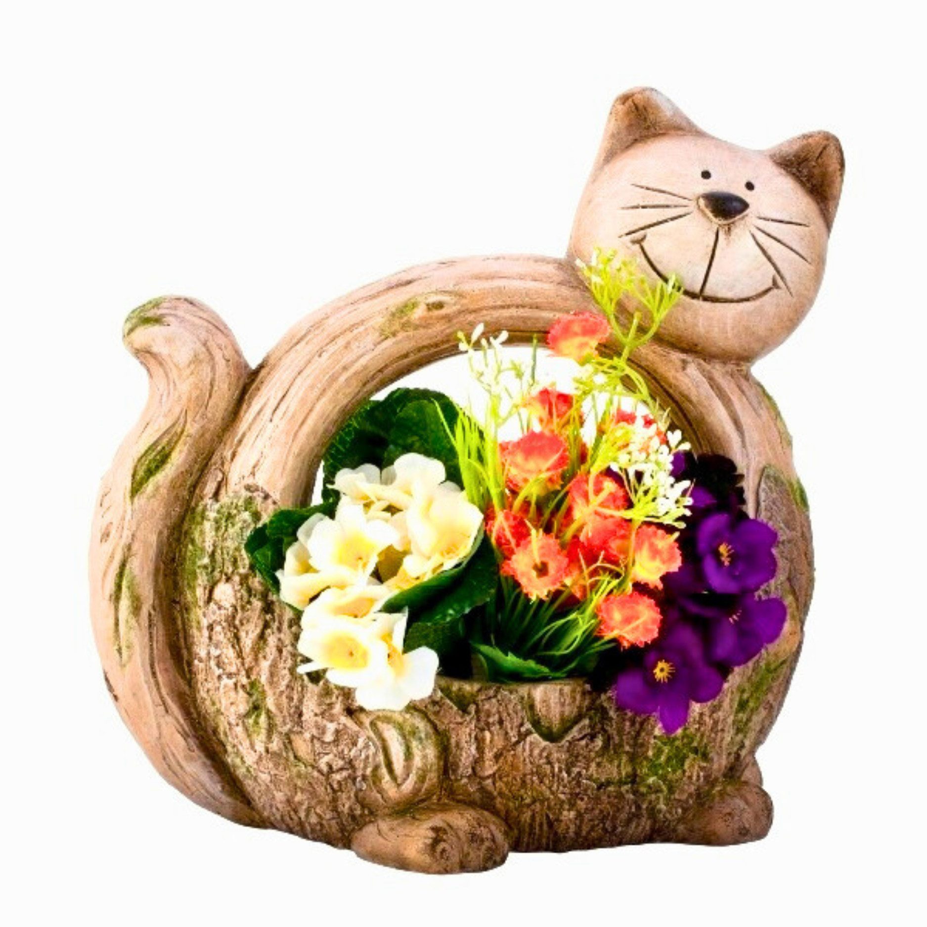 Die graue Farbe und die detailreiche Baumrindenoptik, akzentuiert durch zarte Moosdetails, verleihen diesem Stück eine natürliche Anmutung, die sich nahtlos in jede Umgebung einfügt. Egal, ob Sie Ihr grünes Paradies im Freien gestalten oder eine gemütliche Ecke in Ihrem Zuhause aufwerten möchten – dieses charmante Katzen-Pflanzgefäß ist eine erfrischende Wahl, die Stil und Natur zusammenbringt.