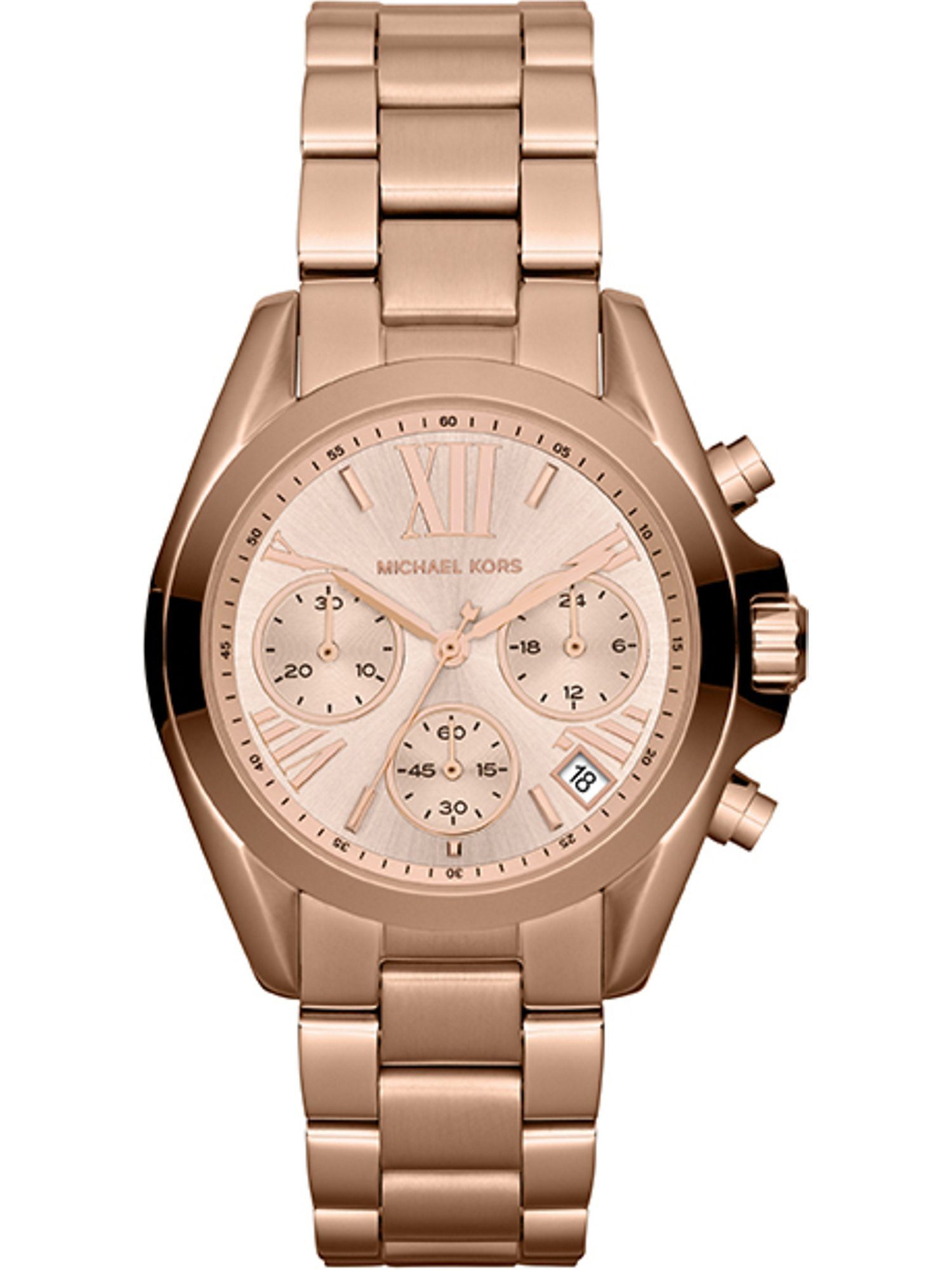Willkommen in der Welt von Michael Kors! Seit 1981 verkörpert das Label des preisgekrönten, amerikanischen Designers den glamourösen Lifestyle, der klassische Eleganz mit modernen Akzenten vereint. Mit seinen Uhrenkollektionen bringt Michael Kors einen Hauch erschwinglichen Luxus ans Handgelenk, indem er praktische Funktionalität mit trendigen Designideen verschmilzt. Für Damen, die in Sachen Stil und Qualität keine Abstriche machen möchten, ist die Michael Kors Bradshaw die optimale Wahl. Dieser sportive Chronograph kombiniert ein robustes Edelstahlgehäuse mit einem sportlichen Edelstahlband. Das runde Gehäuse ist immer eine stilsichere und edle Wahl. Die römischen Zahlen auf dem Ziffernblatt tragen nicht nur zur guten Ablesbarkeit der Zeit bei, sondern setzen auch einen schicken, modischen Akzent. Geschützt wird das Ziffernblatt von einem robusten Mineralglas. Als Chronograph zeigt die Damenuhr die typischen Hilfsziffernblätter, die den unverwechselbaren Chrono-Look ausmachen. Die Uhr erhält durch das goldene Edelstahl-Band eine gewisse Eleganz und wird durch die Kipp-Faltschließe am Platz gehalten. Präzision und Funktionalität treffen bei dieser Michael Kors-Uhr aufeinander: Das Quarz-Werk sorgt für genaue Zeitmessung und die Wasserdichte von bis zu 10bar ermöglicht unbesorgte Ausflüge ans Wasser. Ob für den Alltag oder den besonderen Moment – dieser Zeitmesser von Michael Kors passt sich deinem Leben an und unterstreicht deine Freiheit, die Zeit nach deinen Regeln zu gestalten.