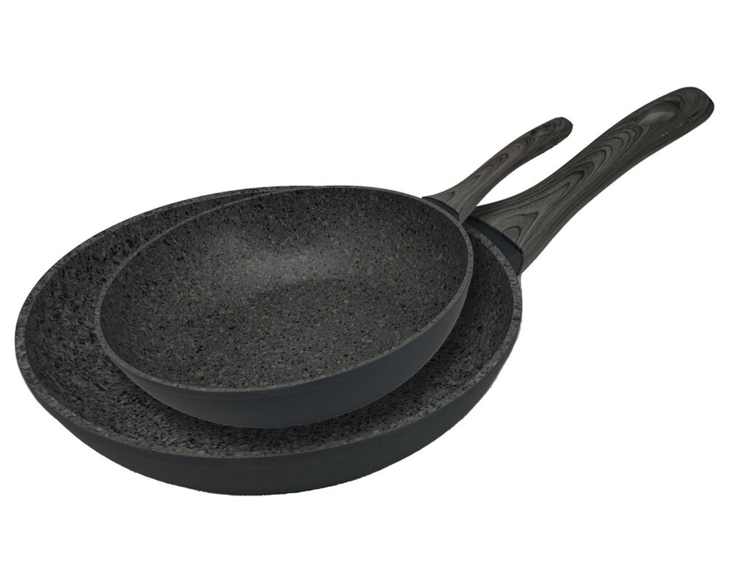 Dieses 2-teilige Bratpfannen-Set kombiniert Funktionalität und Stil. Hergestellt aus einer geschmiedeten Aluminiumlegierung und ausgestattet mit einer langlebigen Duritia Plus Antihaftbeschichtung in moderner Steinoptik, bietet es eine hervorragende Wärmeverteilung und ermöglicht fettarmes Kochen. Die hitzebeständige Außenlackierung sowie der ergonomische Softgriff in Holzoptik sorgen für zusätzlichen Komfort und ein elegantes Design.