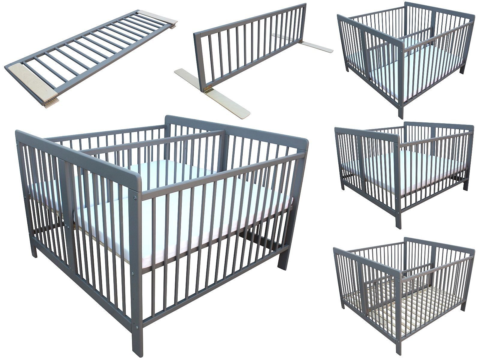 Zwillingsbett Kinderbett für Zwillinge Kiefer massiv 120x120 cm grau