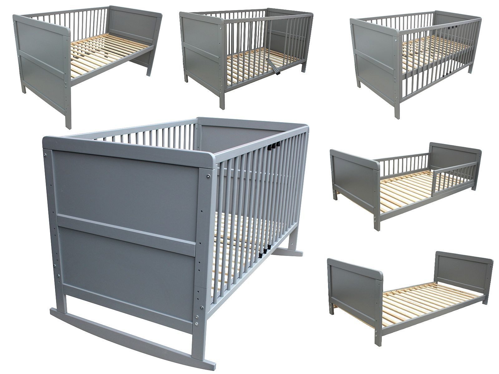 Lieferumfang | Bett mit Lattenrost, hohe Gitterteile, niedrige Gitterteile (lang und kurz), Schaukelkufen, Schraubenset, Aufbauanleitung |