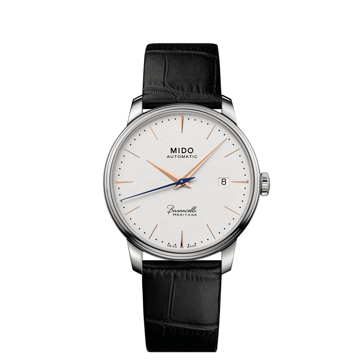 Als Pärchen-Uhr entworfen, zeichnen sich die Baroncelli Heritage Uhren durch ihre Leichtigkeit, Schlankheit und extrem reinen Linien aus, die durch ihre Dauphine-Zeiger und den doppelten Godron erreicht werden. Ausgestattet mit einem Automatikwerk sind diese klassischen und zeitlosen Zeitmesser der perfekte Ausdruck der Uhrmacherkunst von MIDO.