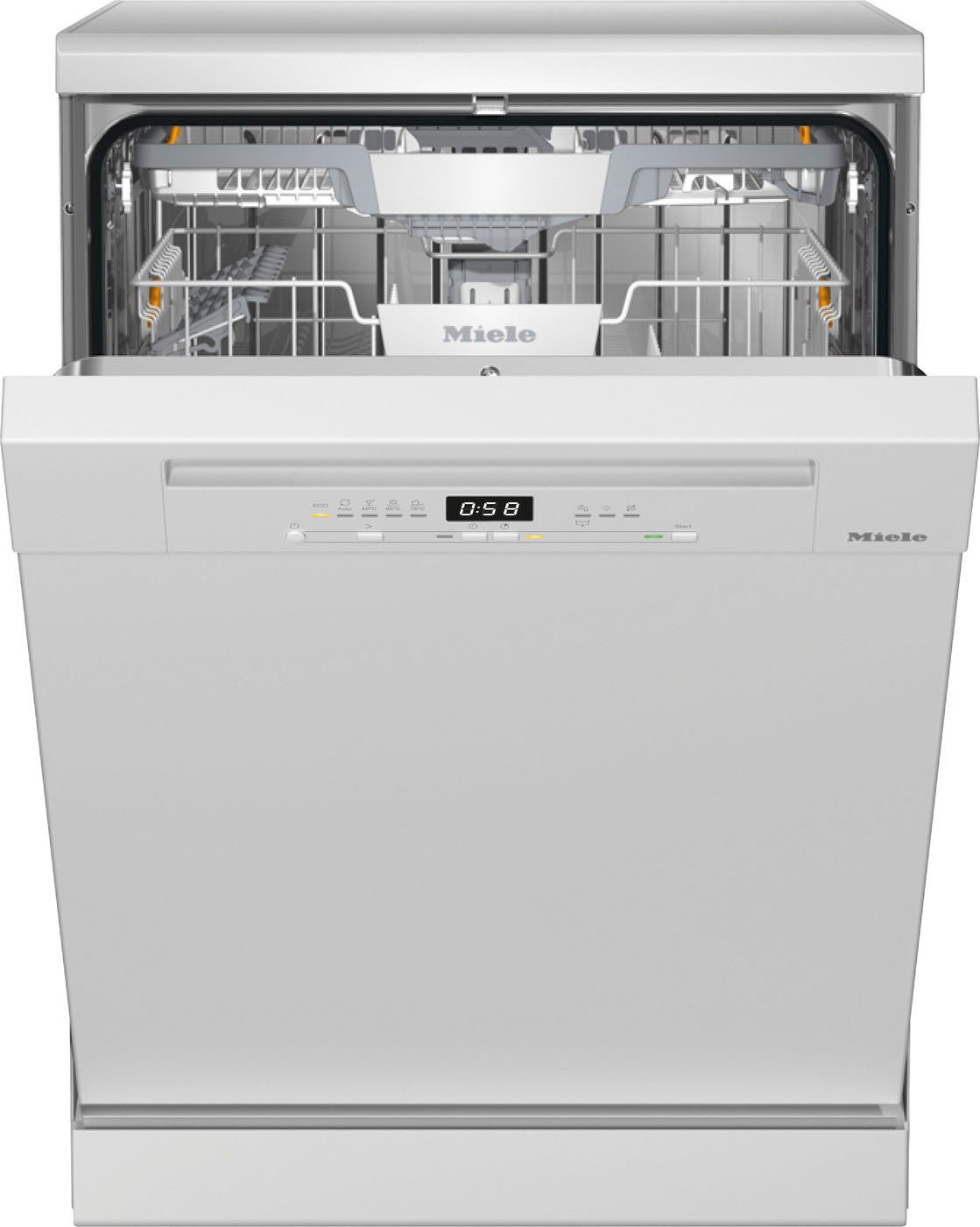 Miele bietet mit dem G 5332 SC Active Plus S einen Standgeschirrspüler mit den Maßen 60 x 85-88 x 60 cm (BxHxT). Haushalte ab vier Personen profitieren von der Ladekapazität der Geschirrspülmaschine. 14 Maßgedecke lassen keine Wünsche offen. Das Gerät verfügt über die Energieeffizienzklasse C (Skala: A bis G) und gehört damit zu den effizienten Modellen auf dem Markt. Gläser, Porzellan und Kunststoffbehälter werden mit der Umluft-Turbothermik-Trocknung optimal trocken und perfekt sauber. Damit jedes Besteckteil gezielt gespült werden kann, verfügt die Geschirrspülmaschine über eine Besteckschublade. Auch bleibt mehr Platz für Geschirr im unteren Bereich der Maschine. Um ein Spülprogramm zu einem bestimmten Zeitpunkt zu starten, verfügt die Geschirrspülmaschine über eine hilfreiche Startzeitvorwahl. Wer nach einer praktischen, funktionalen und verlässlichen Haushaltsunterstützung Ausschau hält, findet mit der Geschirrspülmaschine die perfekte Spülmaschine.