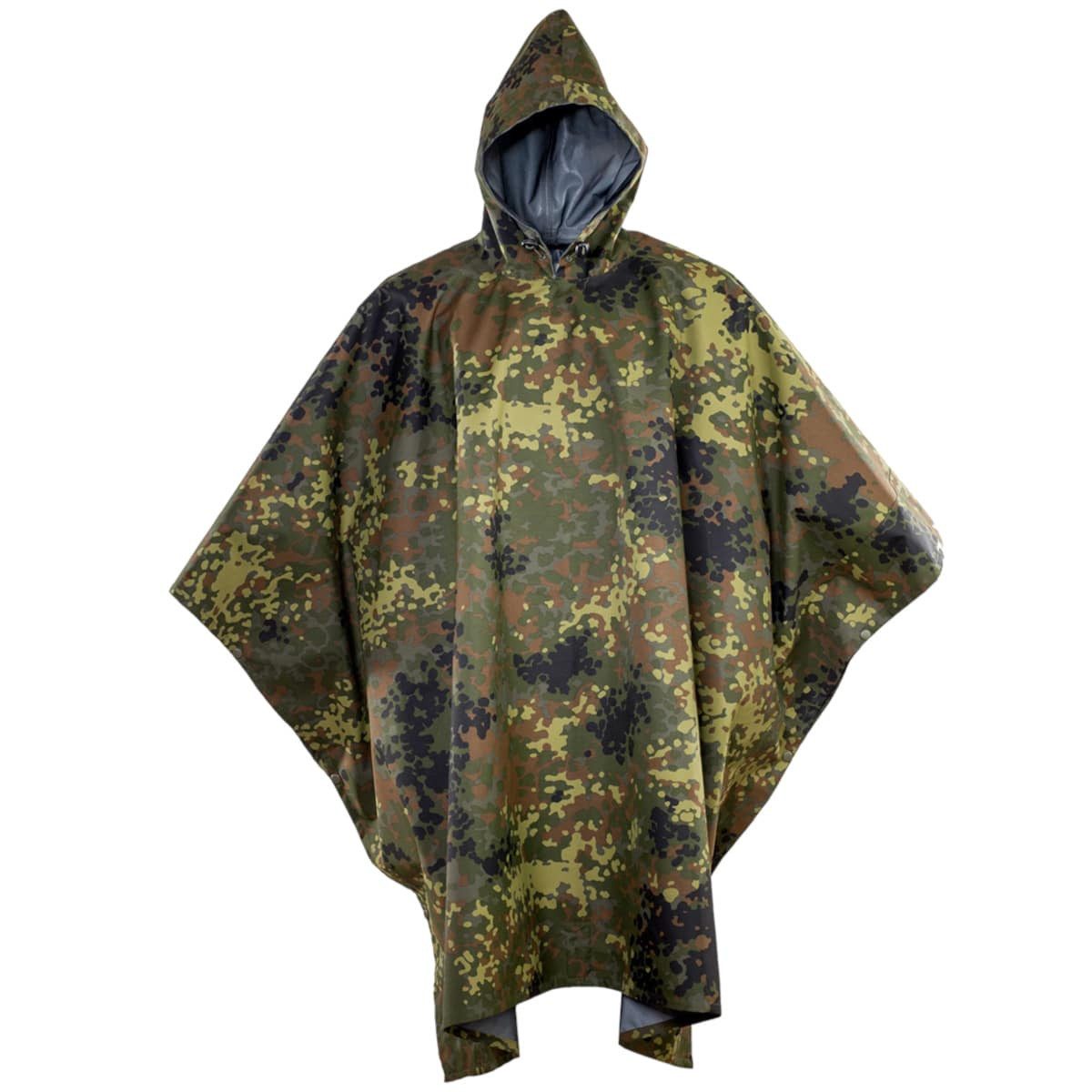Er kann vielseitig als Regenschutz, Zelt, Schrägdach, Wind- oder Tarnschutz, Unterleg- und Abdeckplane oder zur wasserdichten Verpackung genutzt werden. In Verbindung mit einem Poncholiner wird er zudem zu einem leichten und wasserdichten Sommerschlafsack, der Sie vor Wind, Nässe und Kälte schützt.