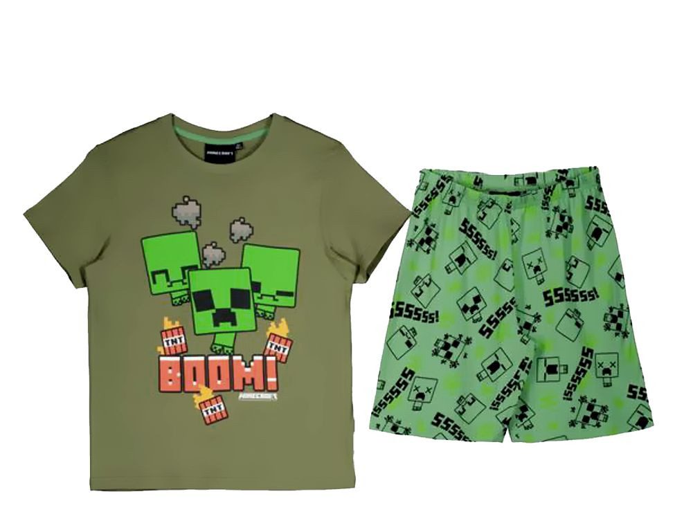 Pyjama MINECRAFT Kinder Pyjama SHORTY oliv Creeper Kinder Jungen + Mädchen