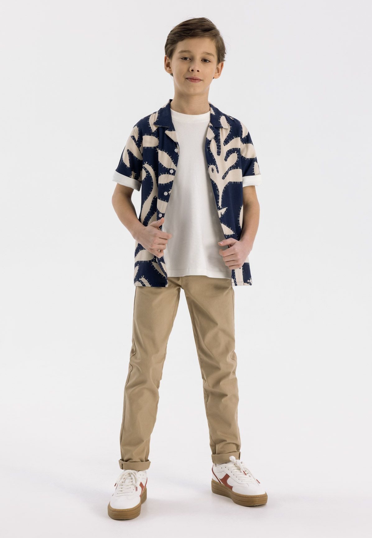 Klassische Chino-Hose, die aus hochwertigem Baumwollstoff hergestellt wurde. Verstellbarer Bund eignet sich perfekt zu idealer und perfekter Anpassung. Tolle Lösung sowohl für Alltag als auch für besondere Anlässe. (42402JNR3-4y)