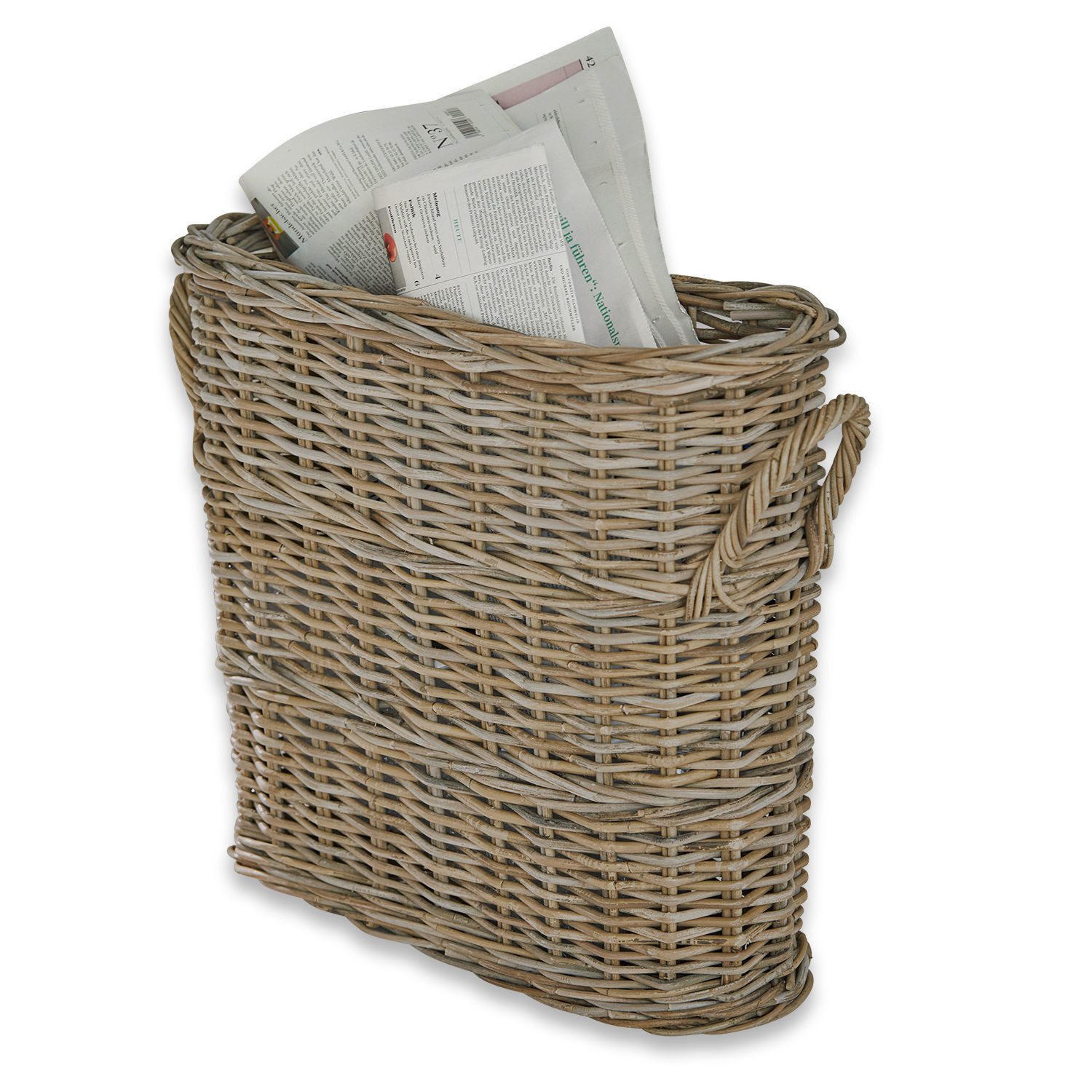 Ein Muss für jeden Zeitungsleser. Dichtes, ebenmäßiges Rattan-Geflecht: Ein Meisterwerk traditioneller Korbmacherkunst. So ist Ihre Lektüre aufgeräumt und trotzdem griffbereit. Regionale Tageszeitung oder Wochenzeitung, Einrichtungsjournal oder Fachzeitschrift – es gibt vieles, was Sie lesen möchten, wofür aber nicht immer ausreichend Muße da ist. Das heißt: Die Zeitschriften müssen sich mindestens bis zum Wochenende gedulden, bis Sie Zeit dafür finden. Doch nichts stört Ihr Wohlgefühl mehr, als wenn auf dem Sofa, dem Couchtisch oder gar auf dem Teppich überall Lesematerial verteilt liegt. Dann lassen Sie sich doch von diesem Zeitungshalter helfen! In seinem großzügigen Inneren ist das Lesematerial im Nu ordentlich aufgeräumt und doch stets griffbereit, damit Sie es bei Bedarf schnell zur Hand nehmen und sich eine kleine Auszeit auf dem Sofa gönnen können. Und wenn Ihr Blick dabei auf den Zeitungshalter fällt, werden Sie jedes Mal von seinem stilvollen Äußeren begeistert sein. Er ist in sorgfältiger Handarbeit aus der Naturfaser Rattan gefertigt, die ein besonders gleichmäßiges Flechtwerk aus runden, glatten Fasern bildet – ein sicheres Zeichen für die Hochwertigkeit des Produkts, das sich mit seinem dezenten Antik-Finish harmonisch in jeden Wohn-Stil einfügt.