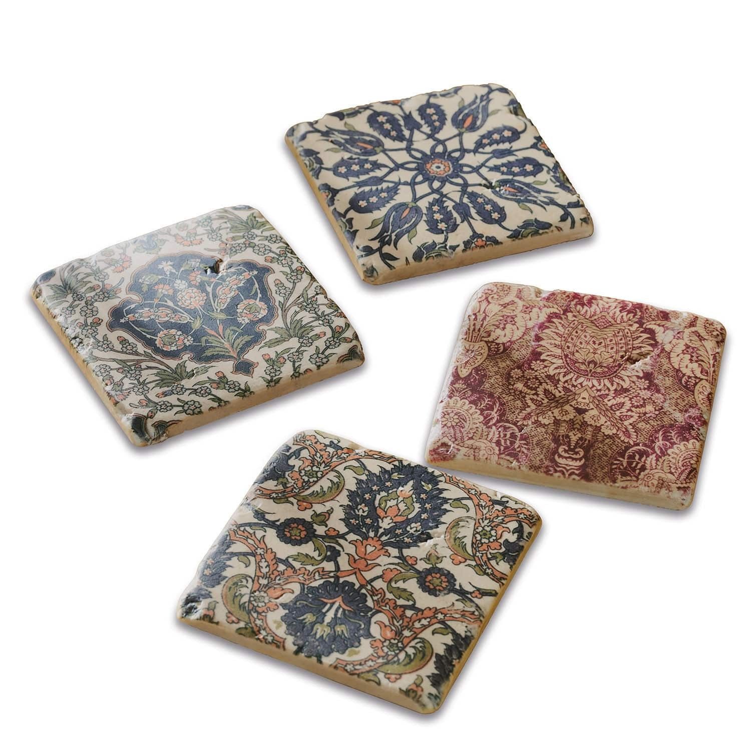 Originelle Hingucker für die ländliche Tischkultur. Florale Muster in vier unterschiedlichen Designs. Rutschfest durch Korkboden. Edle Tisch-Accessoires, die einen Hauch Vintage-Charme versprühen – und bei Ihren Gästen viel Eindruck hinterlassen. Sie werden durch orientalisch inspirierte Blütenmuster wunderschön in Szene gesetzt. Jedes Stück sorgt mit einem individuellen Design für Aufmerksamkeit, trotzdem harmonieren sie als Set wunderbar. Die Oberfläche aus Polyresin macht sie robust und pflegeleicht, während die Unterseite aus Naturkork für Rutschfestigkeit sorgt. Ein Blickfang für die ländliche Tischkultur – auf massiven Holztischen kommen die Untersetzer am schönsten zur Geltung.
