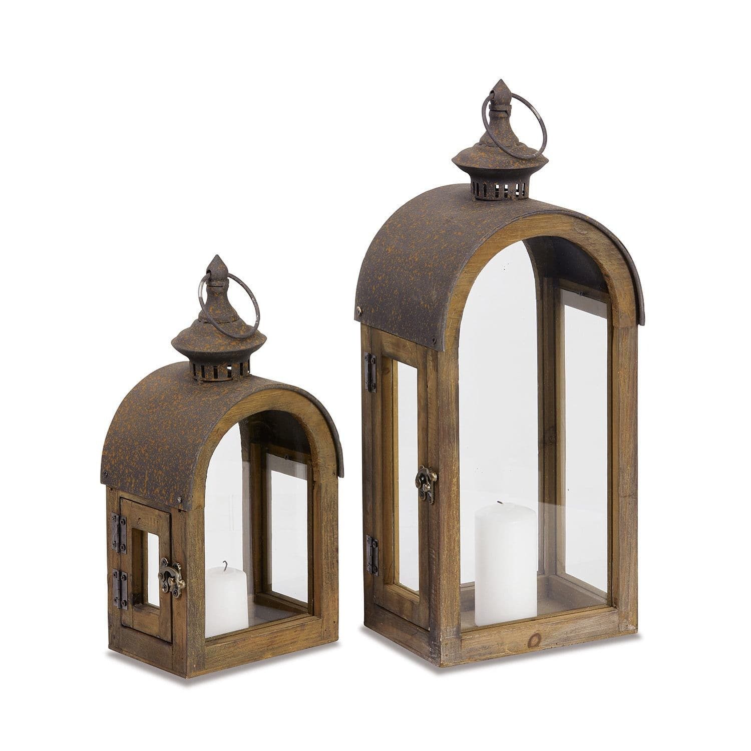 Kunstvoller Mix aus Stahl, Holz und Eisen. Süße Türchen zum Einsetzen von Kerzen. Dank Rundumverglasung sind die Laternen vor Wind geschützt. Sie möchten romantischen Kerzenschein in ihr Zuhause bringen und dabei sicherstellen, dass kein Wachs auf ihre wertvollen Möbel tropft? Mit diesem zweiteiligen Laternenset sind sie auf der sicheren Seite. Einfach den Verschluss öffnen, Kerzen einsetzen und an der romantischen Lichtstimmung erfreuen! Beide Laternen sind aus Tannenholz und Stahl gefertigt und rundum verglast. Dadurch bleibt die Kerzenflamme geschützt gegen Wind und Wetter. Die Laternen sind also auch für die Nutzung unter freiem Himmel ideal. Dank eines raffinierten Verschlusssystems lassen sich die Laternen ganz einfach öffnen und mit Kerzen, LED-Leuchten oder Deko-Objekten bestücken.