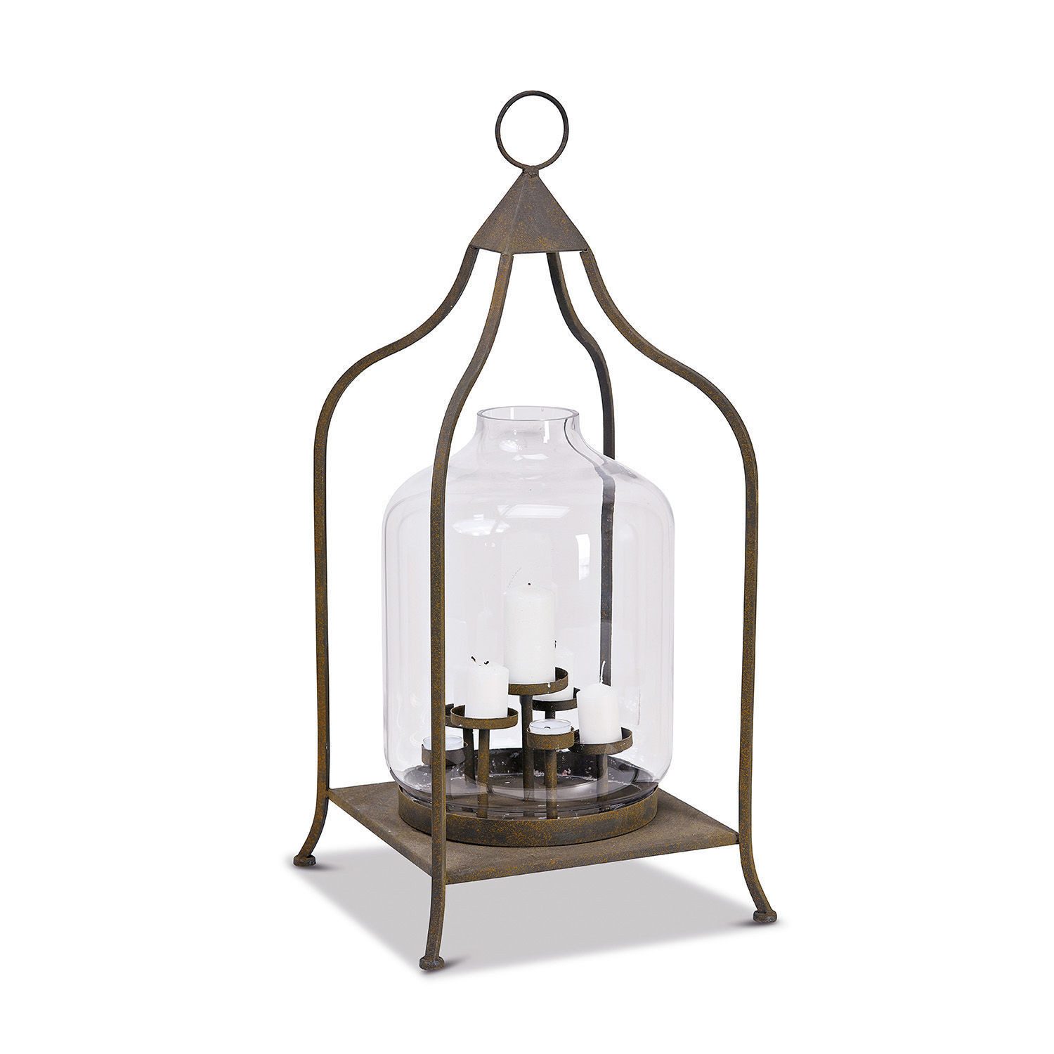 Orientalisch angehauchtes Liebhaberstück mit Antik-Finish. Filigran, elegant und dennoch robust und langlebig. Kann innen und außen hingestellt oder aufgehängt werden. Diese Laterne aus Stahl und Glas zeichnet sich durch ein offenes, luftiges Design aus, das mit orientalischen Elementen punktet. Das robuste Stahlgerüst ist kunstvoll geformt und weist eine sehr filigrane Gestalt auf. Es harmoniert perfekt mit dem transparenten Glaskorpus, der die Kerzen vor Wind und Wetter schützt. Apropos: Die gläserne Glocke lässt sich abnehmen, damit man unbeschränkten Zugang zu den sieben Kerzenhaltern erhält. Всеrdings müssen nicht zwingend Kerzen oder Teelichter eingesetzt werden. Wie wäre es mit einer LED-Girlande und kleinen Deko-Figuren, die man auf den einzelnen Tellerchen platziert?