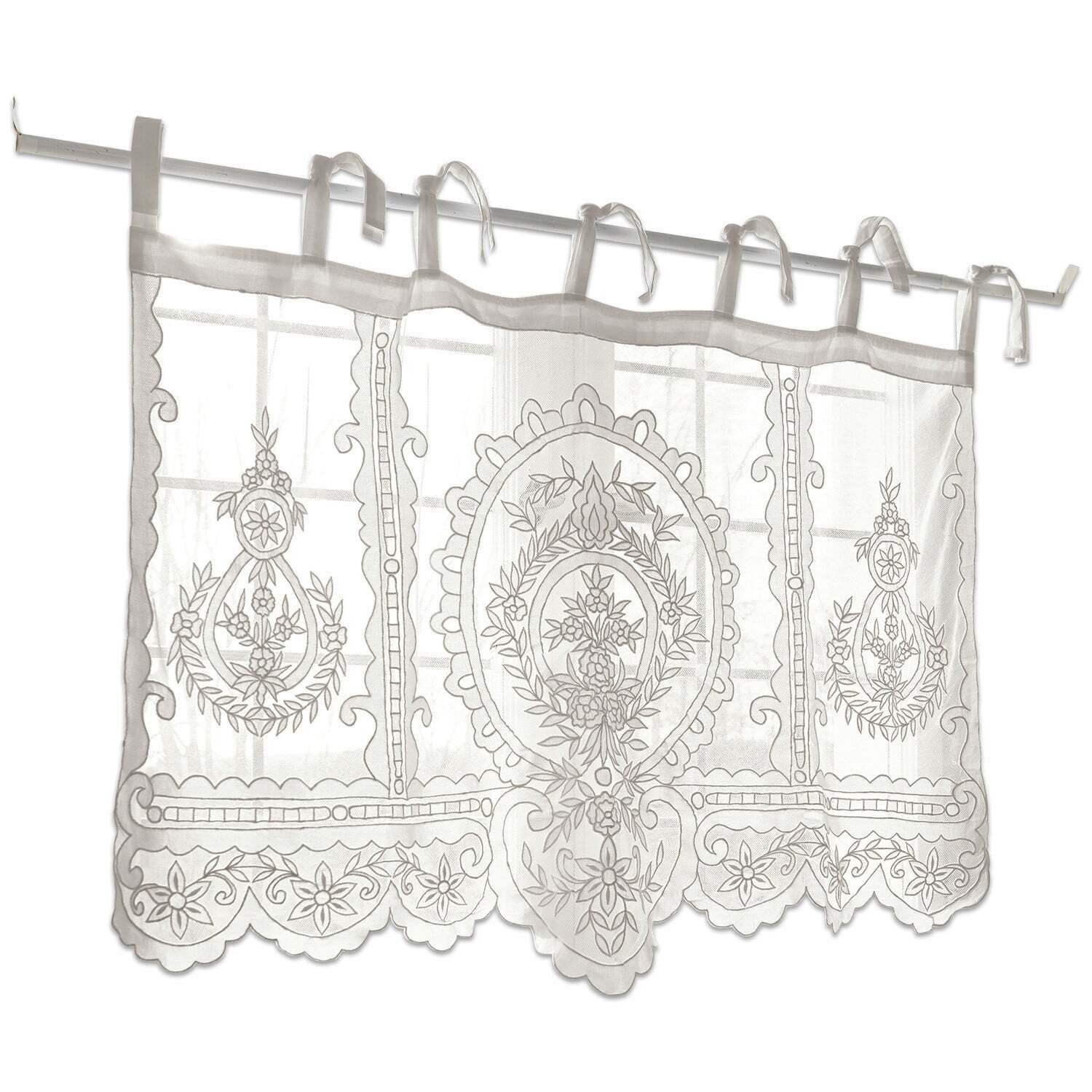 Die fein gewebte Baumwolle macht die Gardine blickdicht, aber lichtdurchlässig. Aufgestickte Floralmuster unterstreichen den klassischen Charme. Die zarte Struktur des Stoffes macht den Kurzvorhang blickdicht, aber er bleibt dennoch lichtdurchlässig. Besonderes Augenmerk verdienen die aufgestickten Floralmuster. In Sachen Kreativität und Kunstfertigkeit, stehen sie wertvollen Jugendstiloriginalen in nichts nach.