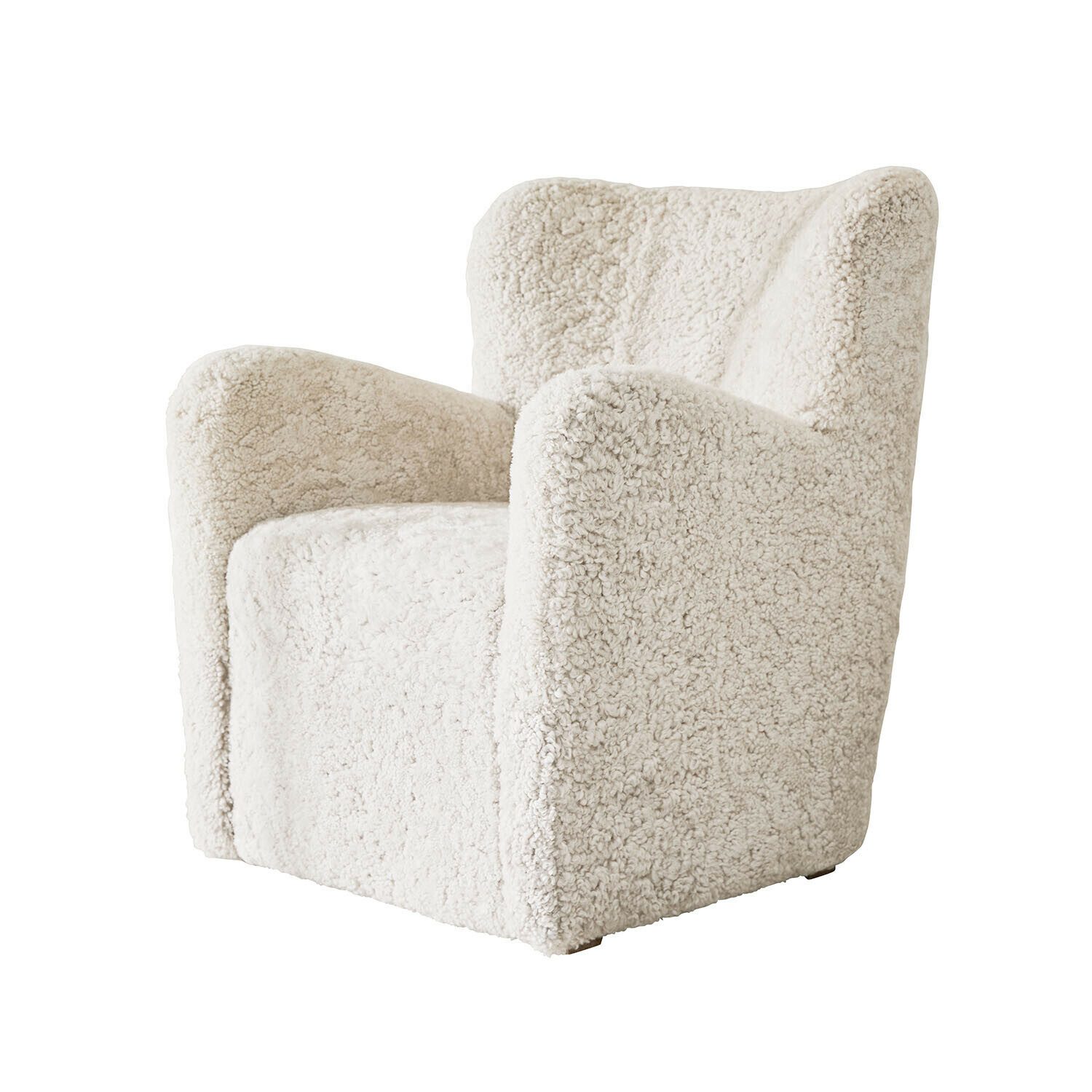 Materialzusammensetzung | Bezug: 100% Lammfell, Polsterfüllung: 100% Polyurethan, Fuß: Eschenholz (fraxinus spp.) |