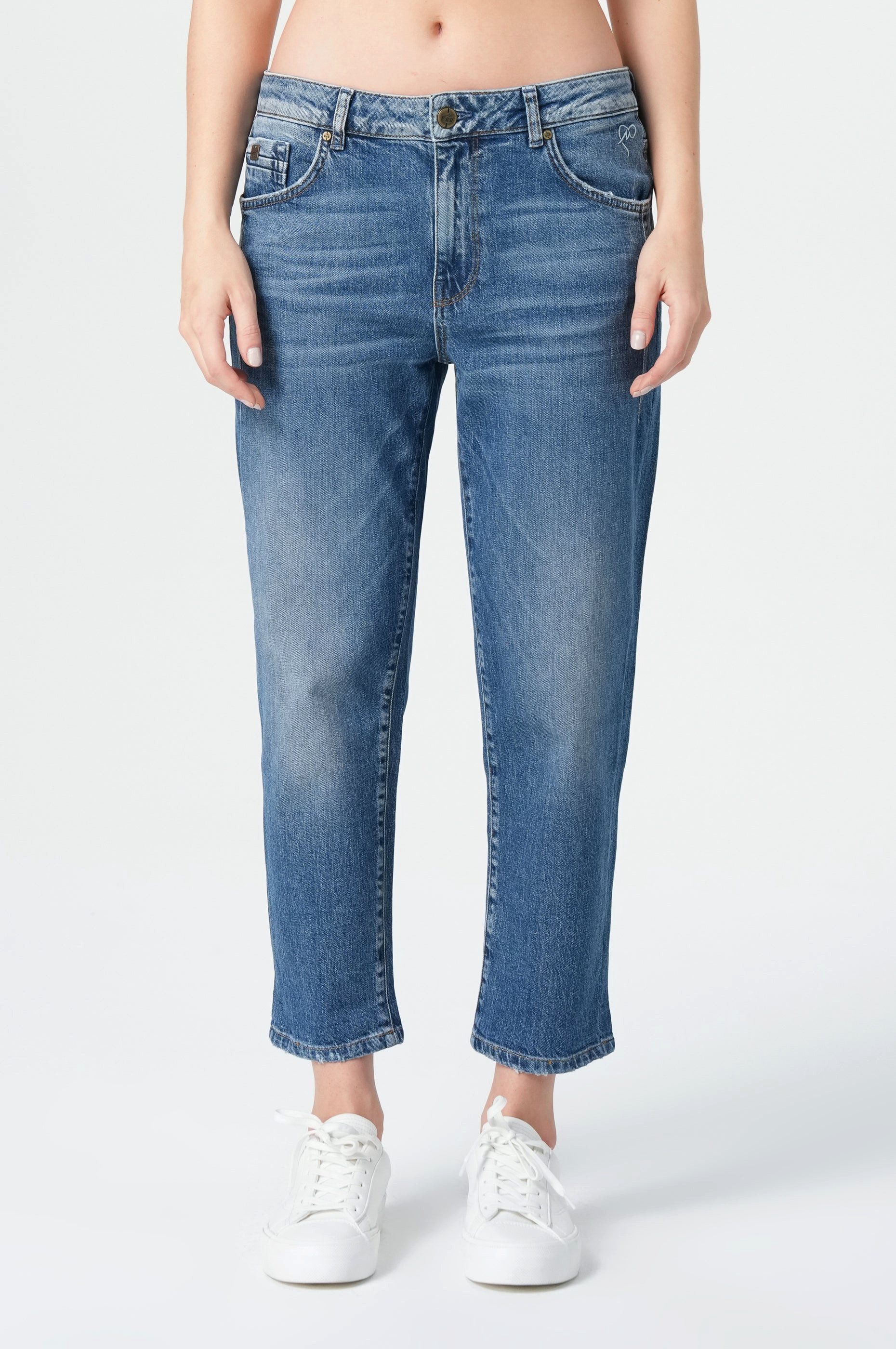 Daisy Damen Comfort Fit Jeans Daft Blau – Zeitlose Eleganz mit modernem TwistDie Daisy Comfort Fit Jeans in Daft Blau verkörpert die perfekte Balance zwischen klassischem Denim-Charakter und zeitgemäßer Silhouette. Mit ihrer präzisen Passform bietet sie eine schmeichelnde Linie mit leicht verkürzter, gerader Beinform – ideal für einen frischen, urbanen Look mit femininer Note. Das sorgfältig zusammengestellte Material aus 99% Baumwolle und 1% Elasthan schenkt dir ein natürliches Tragegefühl mit der idealen Portion Flexibilität für uneingeschränkte Bewegungsfreiheit. Die ausgewogene Daft Blau-Waschung mit ihren subtilen Farbverläufen schafft eine zeitlose Optik, die sich mühelos in deine bestehende Garderobe integriert und vielseitige Styling-Optionen eröffnet.Vielseitiges Design mit Premium-TragekomfortDiese Daisy Comfort Fit überzeugt durch ihre außergewöhnliche Anpassungsfähigkeit an verschiedenste Anlässe. Die cleane, reduzierte Optik ohne ablenkende Details macht sie zum idealen Canvas für deine persönlichen Styling-Ideen – ob mit sportlichen Basics für einen entspannten Wochenend-Look oder mit eleganten Blusen für einen smarten Casual-Style. Die knöchelfreie Длина betont deine Silhouette und setzt gleichzeitig deine Schuhe perfekt in Szene. Der mittlere Bund sorgt für optimalen Sitz, während die leicht relaxte Passform an Hüfte und Oberschenkel für dauerhaften Tragekomfort sorgt. Mit der Daisy Comfort in Daft Blau holst du dir ein durchdachtes Essential in deine Garderobe, das durch seine zeitlose Qualität und stilvolle Ausstrahlung überzeugt und dich über viele Saisons hinweg begleiten wird.
