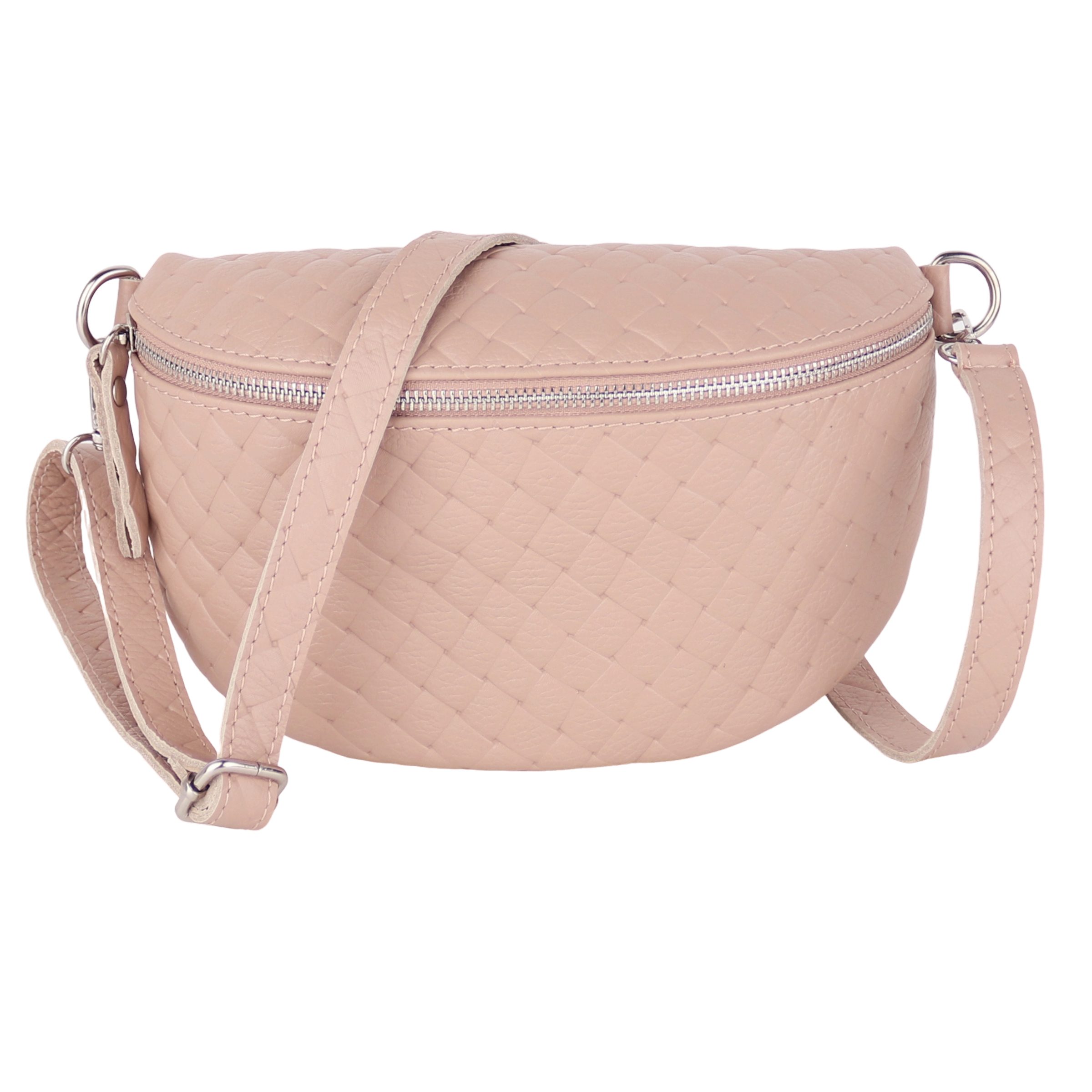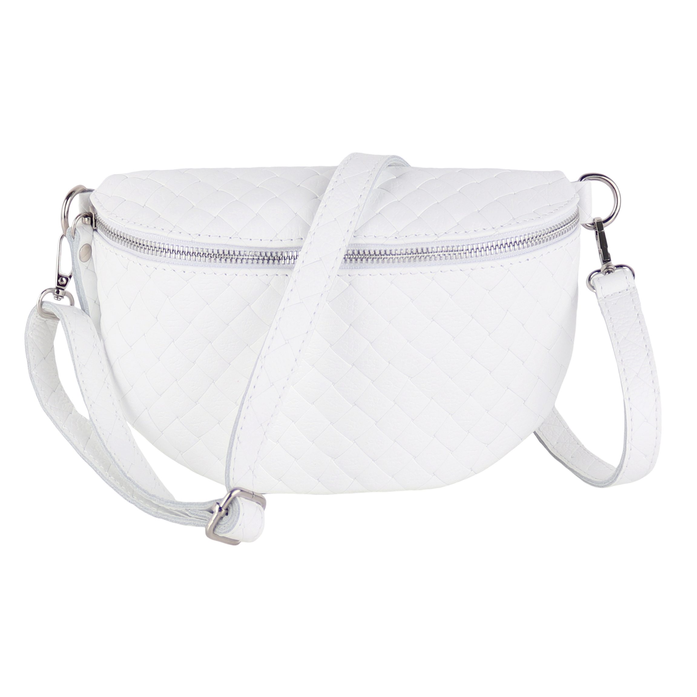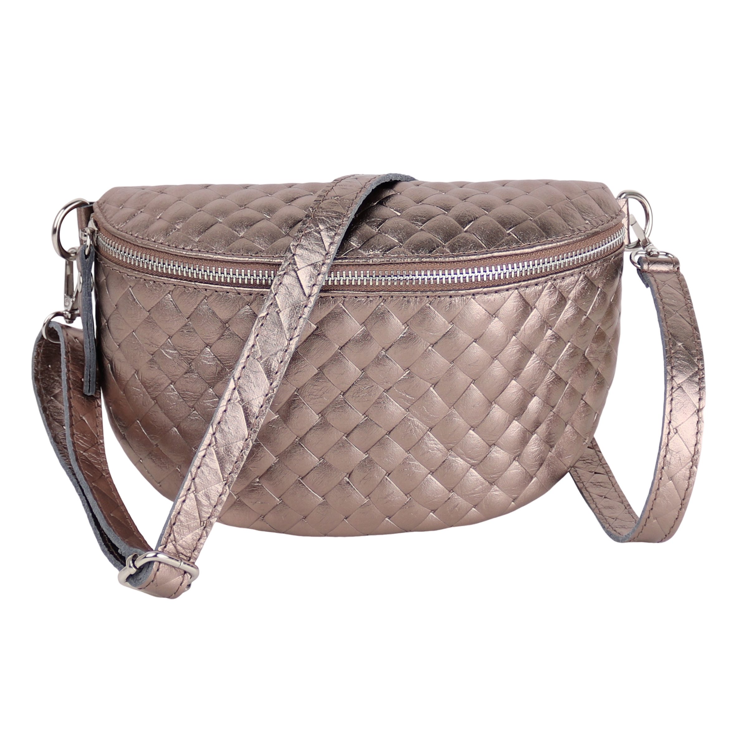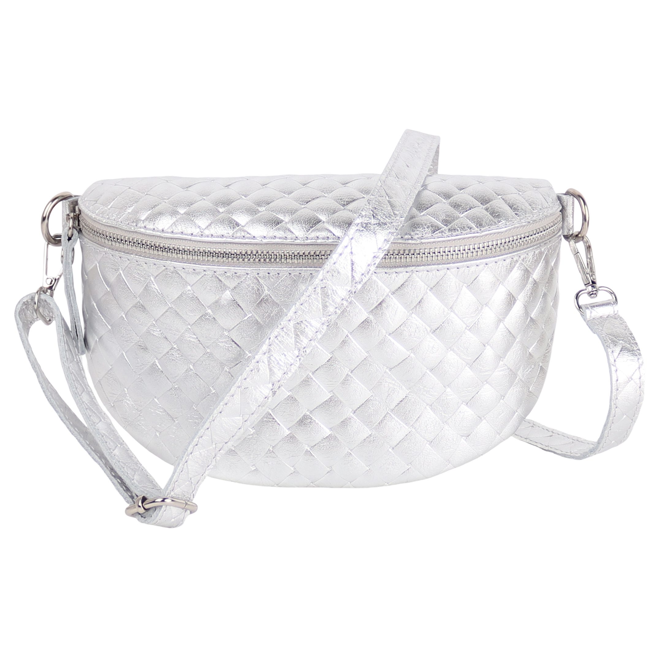 Diese edle Tasche wird in Italien aus hochwertigem, echtem Leder gefertigt und überzeugt mit einer eleganten Raute-Prägung, die ihr eine stilvolle Struktur verleiht. Die matte Oberfläche und die weiche Haptik werden durch robuste Reißverschlüsse und glänzende D-Ringe aus Edelstahl ergänzt. Der großzügige Innenraum bietet ausreichend Platz für all Ihre Essentials und verfügt über ein praktisches Reißverschlussfach zur sicheren Aufbewahrung kleinerer Gegenstände. Die präzisen Nähte und die hochwertige Verarbeitung garantieren eine lange Lebensdauer der Tasche. Dank des verstellbaren Schultergurts lässt sich die Tasche flexibel tragen – sei es im Alltag oder zu besonderen Anlässen.