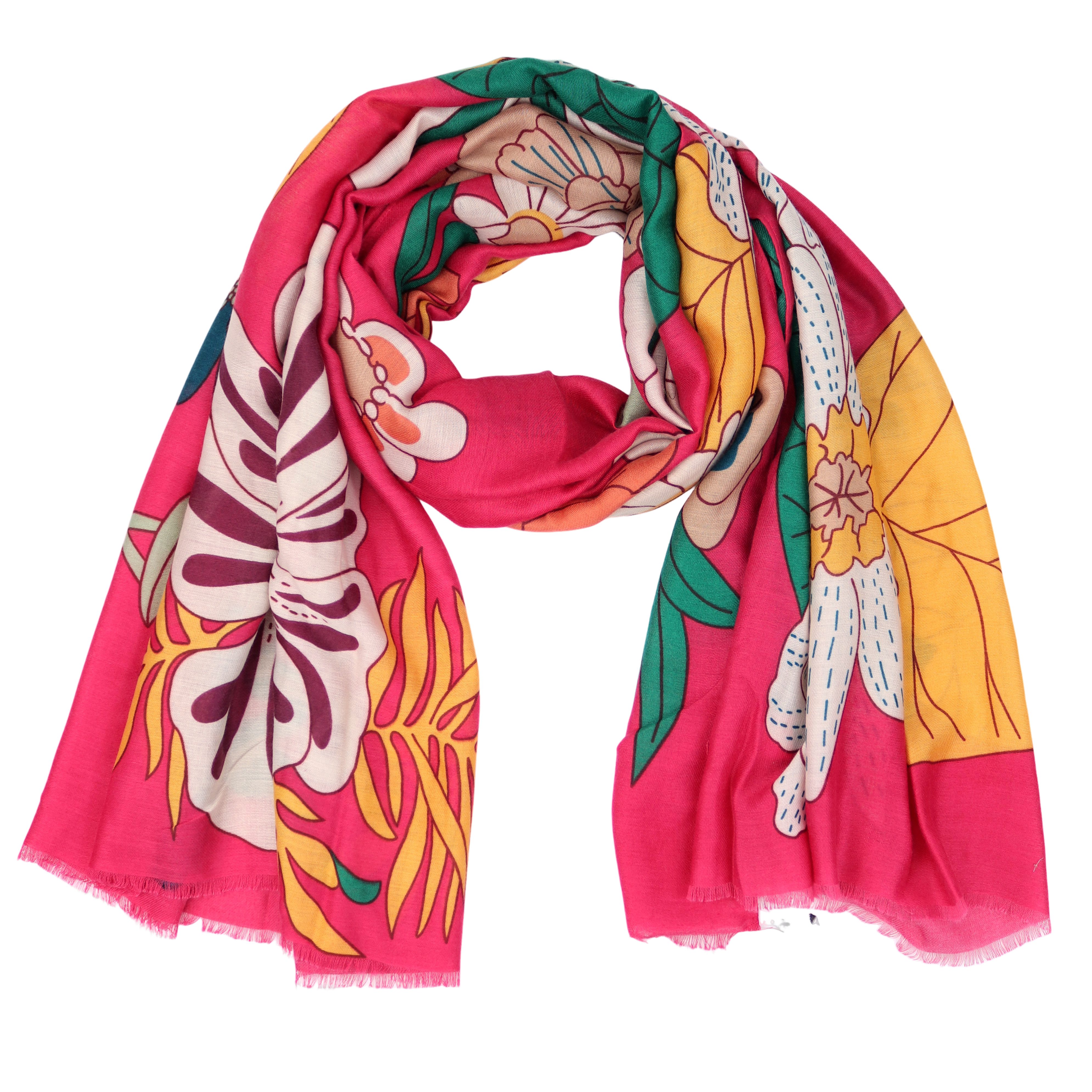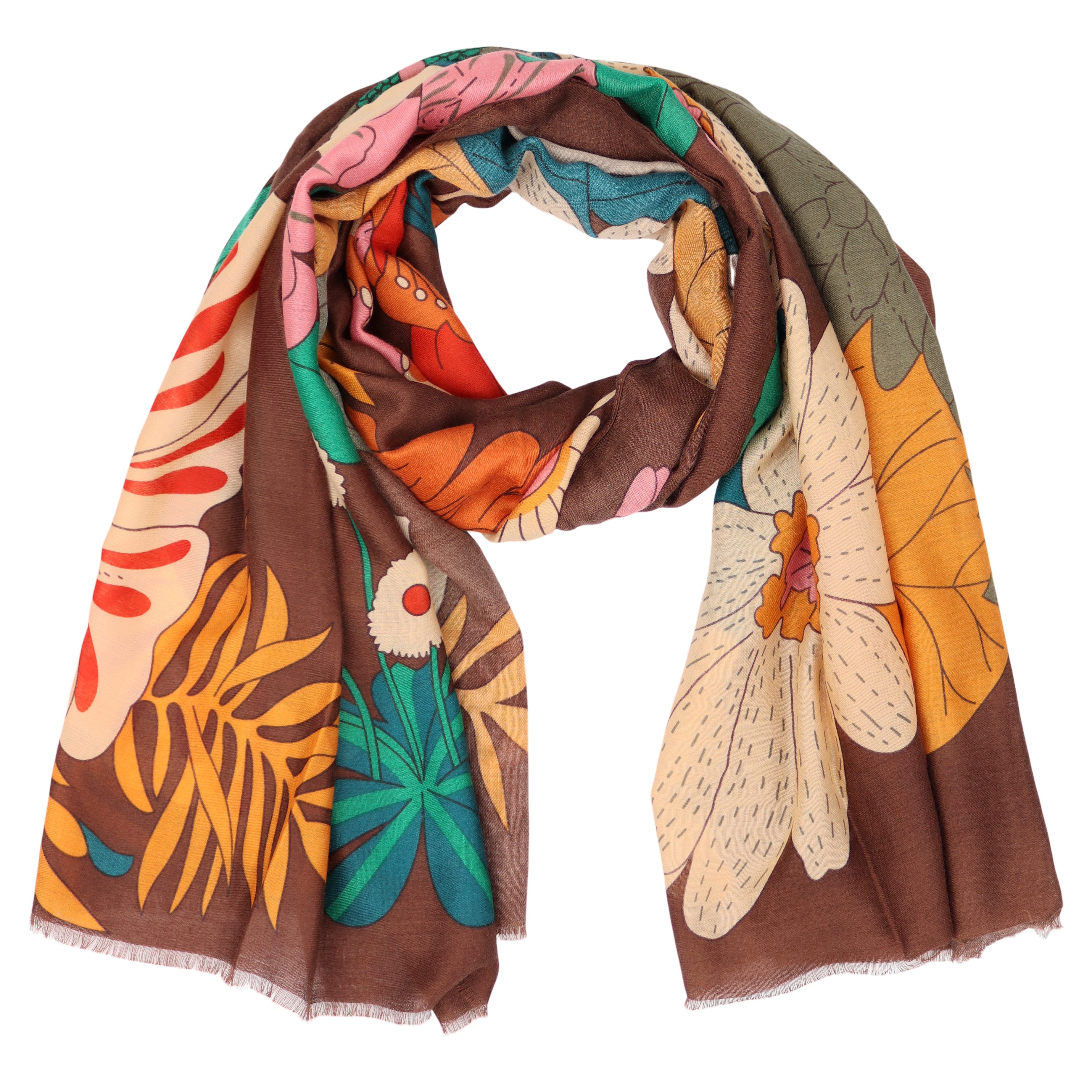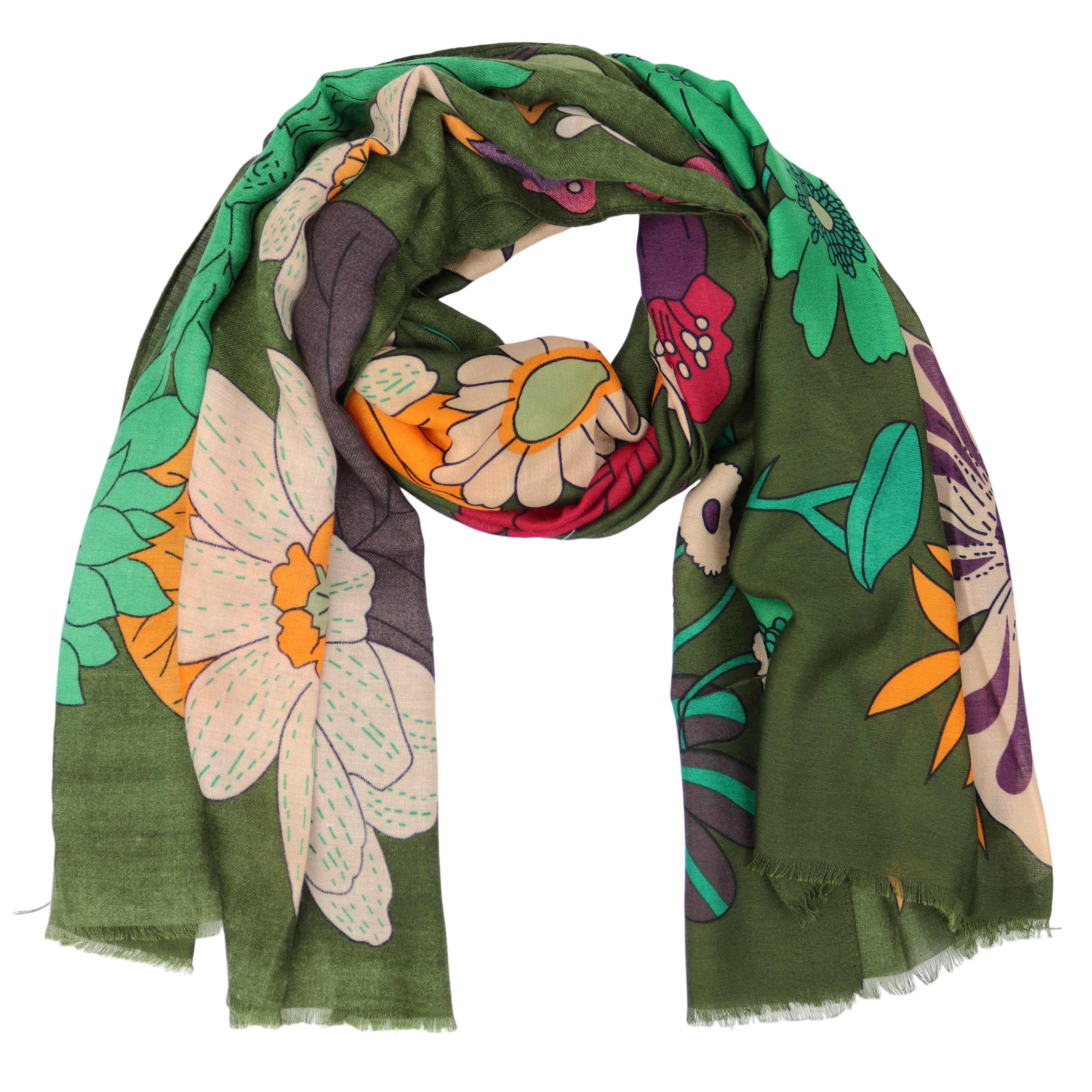 Dieser stilvolle Schal ist ein vielseitiges Accessoire für jede Jahreszeit. Ob an kühlen Frühlingsmorgen oder an windigen Herbsttagen – er rundet jedes Outfit mit einer entspannten, zugleich eleganten Note ab. Das farbenfrohe Blumenmuster verbindet trendbewusstes Design mit einem Hauch nostalgischer Vintage-Romantik.