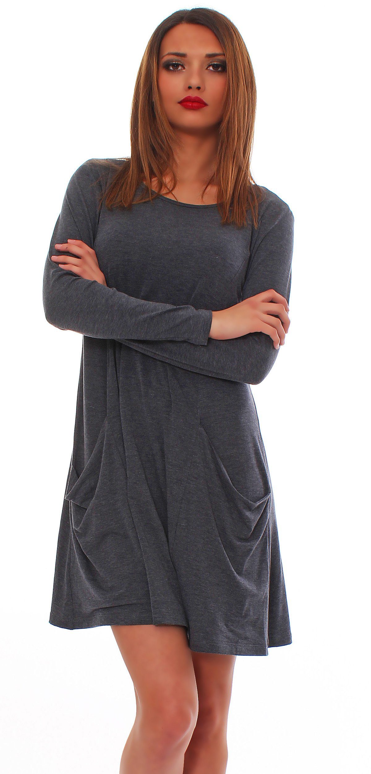 Dieses schlichte Langarmkleid gehört zu den absoluten MUST Haves und Key Pieces in jedem Kleiderschrank! Durch seinen lockeren, aber doch auch taillierten Schnitt schmeichelt er jeder Figur und lässt seine Trägerin schlanker wirken. Das Minikleid erzeugt durch seinen lockeren Schnitt, den Rundhalsausschnitt und dazu noch die Lang- bzw. Kurzarm Ärmel einen sehr edlen, sleeken Look! Zudem lässt der lockere A-Linien bzw. Skater Schnitt es zu, das Kleid an jeden Anlass anzupassen! Ob zu einem lässigen Freizeit-Look, dem Tag im Büro oder abends zur Party und zum Ausgehen - dieses Kleid ist zu allem kombinierbar! Ganz gleich ob Sommer, Frühling, Herbst oder Winter - mit einer dickeren Strumpfhose kann man es an kalten Tagen tragen; an warmen lässt man diese einfach weg. Auch die Materialzusammensetzung (70% Viskose, 30% Polyester) bietet sehr viel Tragekomfort und ein weiches, lockeres Gefühl auf der Haut. Der Stoff ist schön luftig und verleiht der Trägerin ein wunderschönes, bequemes Tragegefühl.