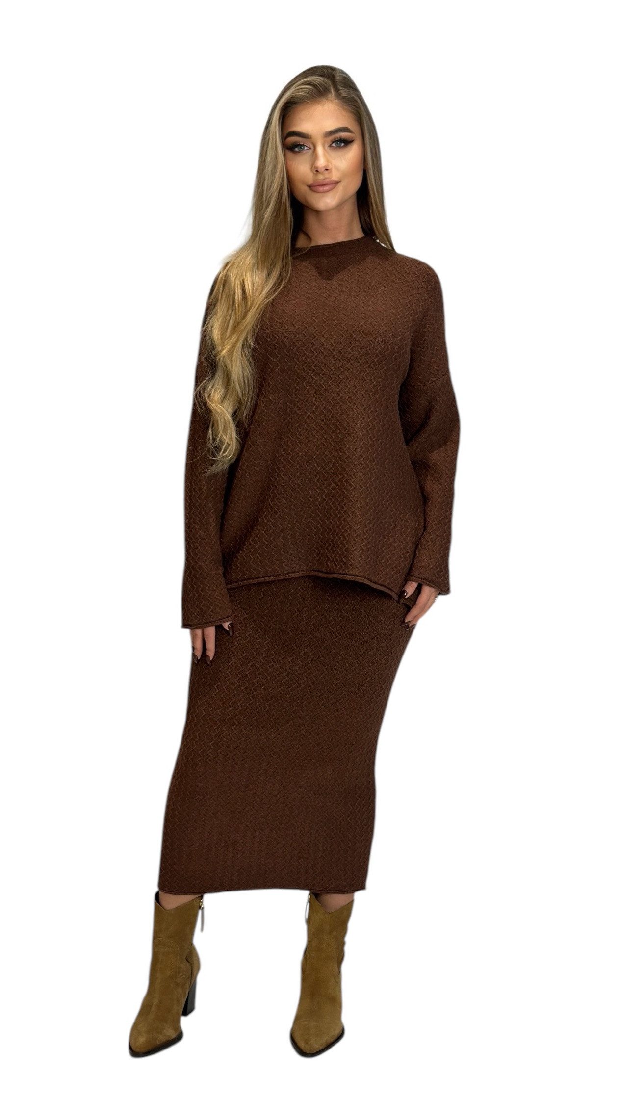 Entdecken Sie das perfekte Outfit für die kalte Jahreszeit mit diesem stylischen zweiteiligen Set aus Rock und Pullover. Hergestellt aus weichem Strick, bietet das Set sowohl Komfort als auch Eleganz. Es besteht zu 50 % Viskose, 28 % Polyester, 22 % Nylon, einem pflegeleichten und langlebigen Material, das sich angenehm auf der Haut anfühlt und optimalen Tragekomfort bietet. Der Pullover hat eine lockere Passform mit V-Ausschnitt, lange Ärmel mit breiten Bündchen und eine leicht verkürzte Длина, die ideal zum knöchellangen Rock passt. Der Rock ist mit einem elastischen Bund ausgestattet, der für Bequemlichkeit sorgt und gleichzeitig eine schlanke Silhouette betont. Beide Teile sind im modernen Rippstrick-Design gehalten, das nicht nur stilvoll aussieht, sondern auch für zusätzliche Wärme sorgt. Die Einheitsgröße ist flexibel und passt sich verschiedenen Körperformen und -größen an, was dieses Set zu einer vielseitigen Wahl für viele Frauen macht. Dank der sorgfältigen Verarbeitung und des italienischen Designs bietet dieses Outfit nicht nur zeitlose Eleganz, sondern auch Langlebigkeit. Erhältlich in mehreren modischen Farben, von warmem Beige bis zu klassischem Creme und Taupe, passt das Set perfekt in jede Wintergarderobe. Kombinieren Sie es mit trendigen Stiefeletten oder hohen Stiefeln für einen kompletten Look. Ob für Freizeit- oder Bürooutfits, dieses Set bietet die perfekte Balance zwischen Komfort und Stil. Es lässt sich leicht in der Maschine bei 30 Grad waschen, sollte jedoch nicht im Trockner getrocknet werden, um die Form des Stricks zu bewahren. Dieses Strick-Set ist die ideale Wahl für modebewusste Frauen, die auf der Suche nach einem gemütlichen und dennoch schicken Outfit sind. Made in Italy, steht es für erstklassiges Design und stilvolle Mode.