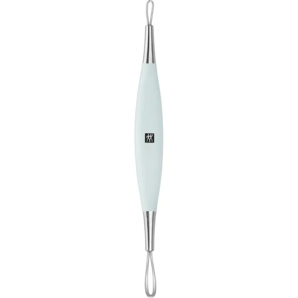ZWILLING Twinox Mitesserentferner, rostreier Edelstahl, satiniert. Beschreibung Der Mitesserentferner aus der hochwertigen TWINOX® Serie ermöglicht eine sanfte, hygienische und effektive Entfernung kleinerer Hautunreinheiten. Durch die Formgebung der Schlaufen und den speziell entwickelten Soft-Touch Grip wird eine präzise Anwendung an der Hautunreinheit gewährleistet. Details Effektive, sanfte und hygienische Entfernung von kleineren Hautunreinheiten Runde Schlaufen zur punktuellen Anwendung Spezieller Soft-Touch Grip für präzise Anwendung ohne Abrutschen Hygienischer Werkstoff Edelstahl, matt-satiniert Anwendung Die runden Schlaufen des Mitesserentferners werden punktuell auf einzelnen Hautunreinheiten platziert und angewendet. Durch leichten Druck auf die ausgewählte Stelle öffnen sich die Poren und angesammelte Ablagerungen werden schonend entfernt. Durch den speziellen Soft-Touch Grip liegt der Mitesserentferner perfekt in der Hand und ermöglicht eine präzise Anwendung ohne Abrutschen. Im Gegensatz zum händischen Ausdrücken von Hautunreinheiten, hat die Verwendung der Instrumente den Vorteil, dass Bakterien nicht in direkten Kontakt mit der geöffneten Hautunreinheit kommen und somit die Gefahr einer Entzündung verringert wird