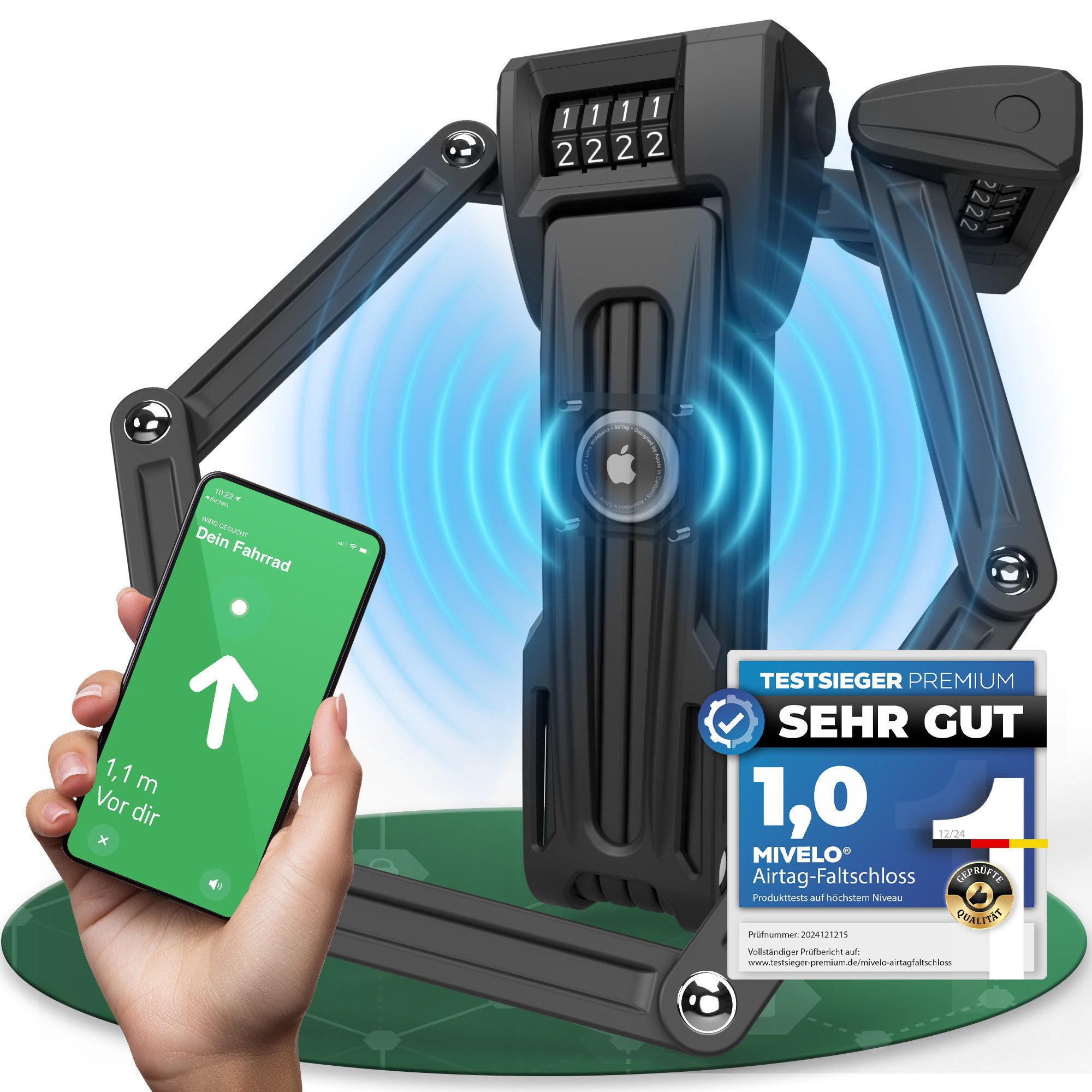 MIVELO Faltschloss mit Fach für AirTag – Maximale Sicherheit für Fahrrad, E-Bike und E-Scooter