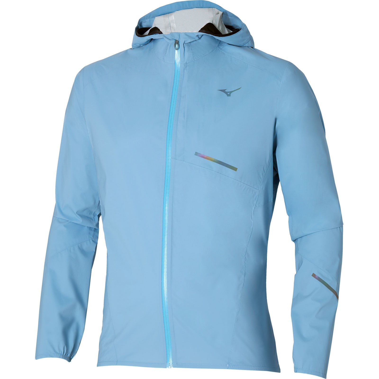 Mizuno Waterproof 20K Jacket Laufjacke für Herren. Hochwertige wasserdichte und atmungsaktive Jacke (20K wasserdicht/25K atmungsaktiv) für hervorragenden Schutz bei starkem Regen. Extrem leichtes, elastisches, gewebtes und vollverschweißtes Nahtmaterial für mehr Komfort und Bewegungsfreiheit. Kapuze mit Stretchband und wasserdichtem Frontreißverschluss. Reißverschlusstasche auf der Brust zur Aufbewahrung bei Läufen.