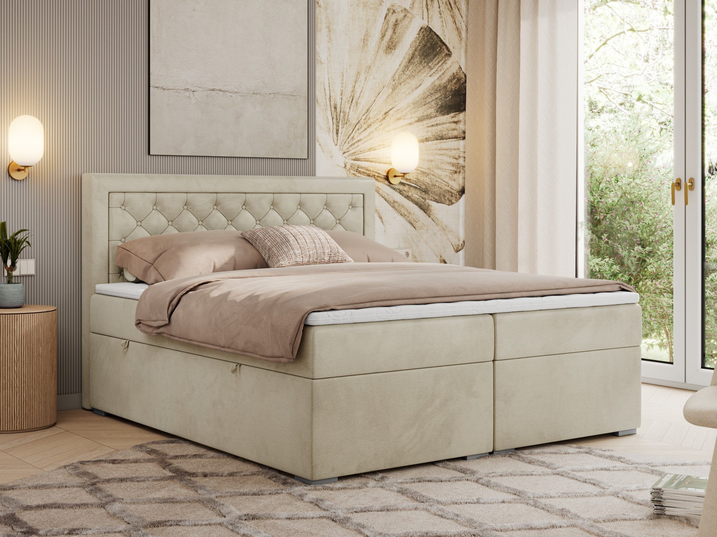 Das Boxspringbett JASIR ist nicht nur ein Möbelstück, sondern ein Ausdruck für Luxus und Eleganz in Ihrem Schlafzimmer. Mit seinem glamourösen Design zieht es alle Blicke auf sich und verwandelt jeden Raum in eine komfortable Wohlfühloase.