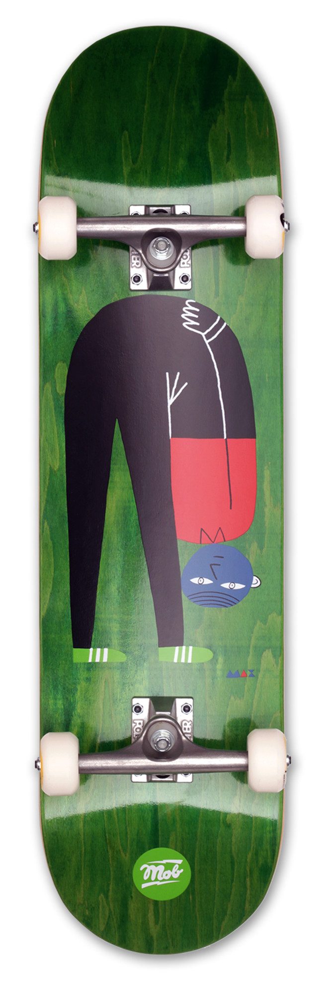 Das MOB Perspective Design auf der Deck-Unterseite überzeugt mit einem kreativen, abstrakten Menschen in Grün – ein echter Hingucker bei jeder Skate-Session! Die raue Griptape-Oberfläche sorgt für festen Stand und perfekte Kontrolle bei Tricks und Sprüngen. Mit einer Длина von 32.125 Zoll (81,6 cm) bietet das Board genug Platz für sichere Landungen und hohe Stabilität.