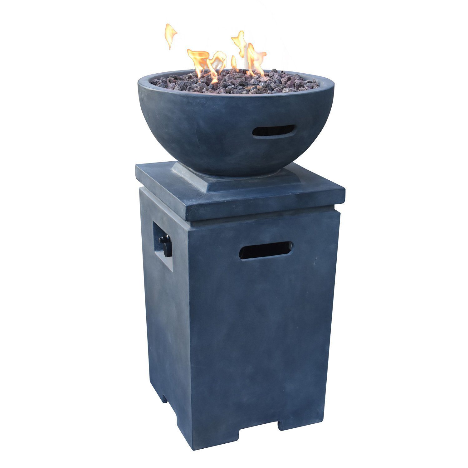 Gasfeuerstelle "Kupe" in Beton-Optik Gas Feuerstelle Kupe in dunkelgrauer Beton-Optik weist eine schlichte antike Sockel-Schale Form auf, die aus einem Guss gefertigt ist. Die dunkelgraue Farbe mit dem Feuer bilden ein harmonisch-kontrastvolles Farbenspiel, welches die Feuerstelle im Garten zu der Attraktion auf einer Gartenfeier oder beim gemütlichen, abendlichen Beisammensein mit der Familie werden lässt. Wenn Sie zwei dieser Feuerstellen Kupe kombinieren, können Sie auf diese Art sogar ein Tor zu Ihrem Gartenparadies kreieren. In dem Hohlraum des Feuerstellen-Sockels kann die Gasflasche wunderbar integriert werden und wird somit zu keiner optischen Störung mehr. Mit der eingebauten Umkippsicherung wird der Gasfluss unterbrochen, falls die Gas Feuerstelle in eine Schieflage geraten sollte. Die Höhe der Flammen können Sie über den Gas-Regler je nach Wunsch entsprechend einstellen. Der bereits angebrachte Druckminderer sorgt während der Nutzung für den optimalen Druckausgleich. Wenn die Feuerstelle soweit fertig aufgestellt und an die Gasflasche angeschlossen wurde, nehmen Sie die beigefügten rotbraunen Lavasteine und dekorieren Sie damit die Brennerschale. Jetzt ist die Feuerstelle bereit für das Feuerspiel!