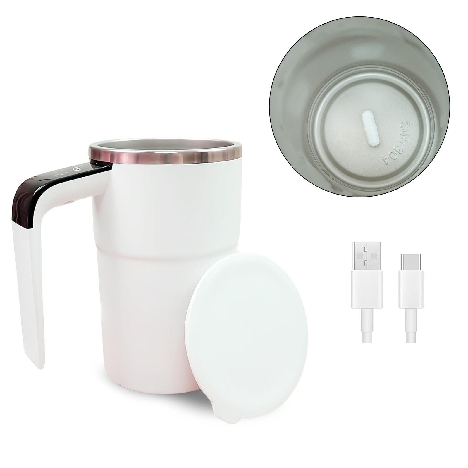 Der selbstumrührende Becher verfügt über eine wiederaufladbare Lithium-Batterie, die via USB (Kabel im Lieferumfang) geladen wird.